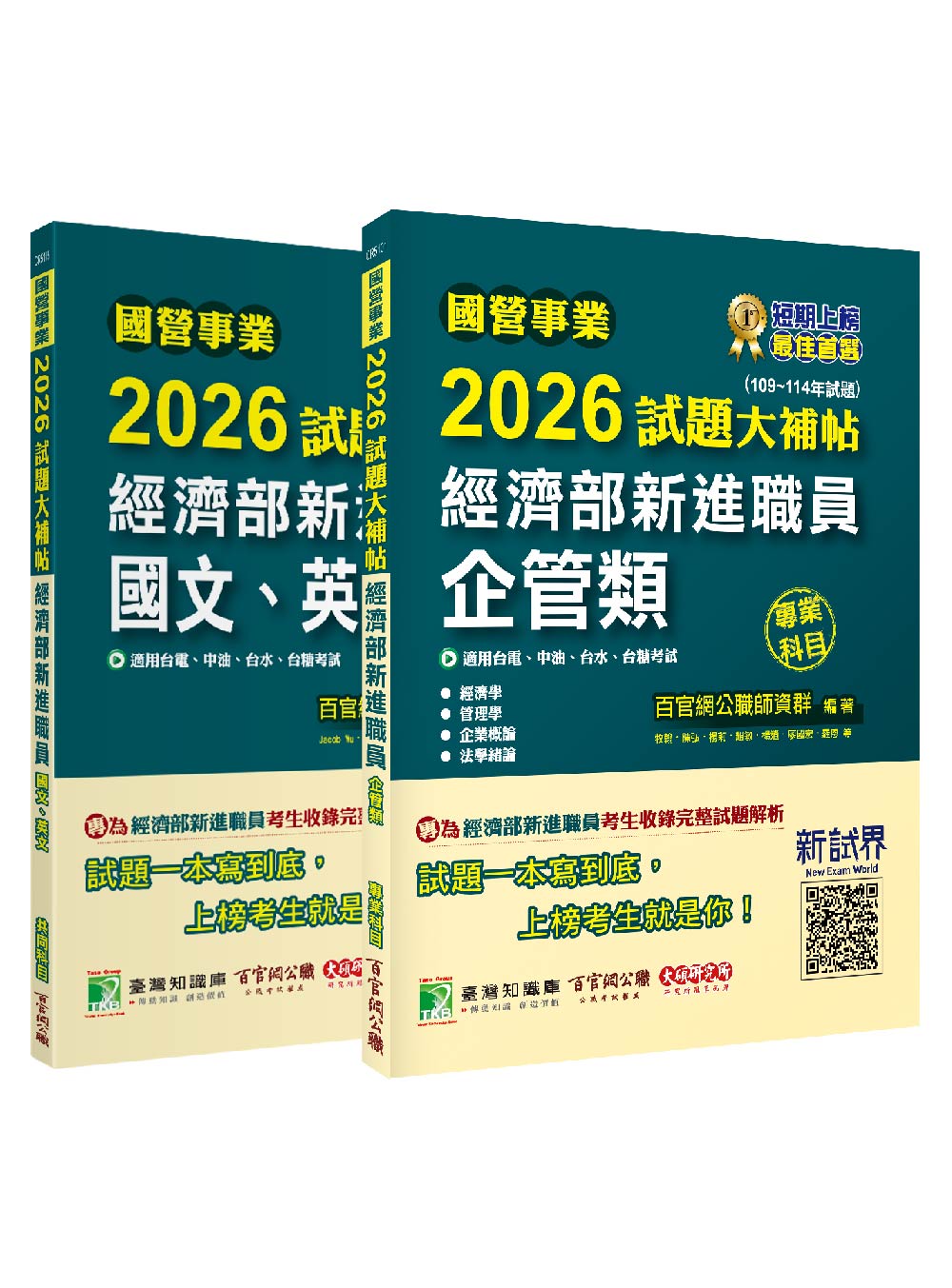 此書適用於台電、台水、台糖等考試,想要成為經濟部新進職員,大多會選擇報考此項國營考試,作為進入國營事業從事人資類工作的首要門檻。試題大補帖系列提供想要報考這類考試的考生,能有一本針對企業管理、法學緒論、勞工法令、人力資源管理的考前衝刺的歷屆試題演練書,考生只需購買一本書,即可抓住企管類考科的重點題型。