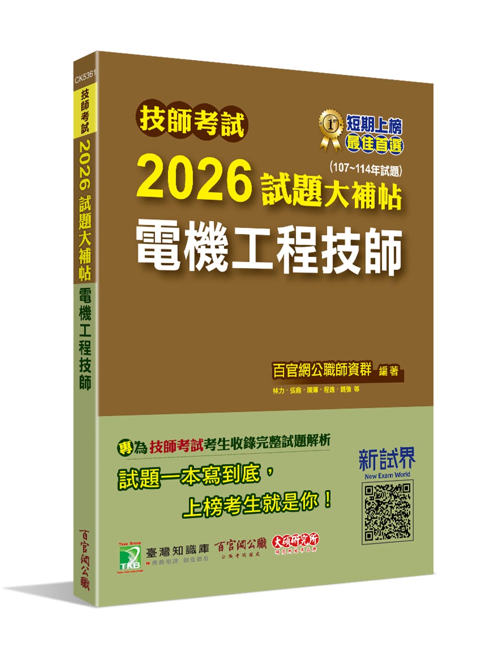 1.此書為提供報考技師考試考生使用的歷屆試題書: 想要取得技師執業資格證照會選擇報考此類國家考試。技師考試試題大補帖系列提供報考這類考試的考生,精選多年度歷屆試題演練成書,考生只需購買一本書,即可抓住考試的重點題型。 2.收錄多年度完整試題(今年度收錄107~114年度試題)。 3.建議搭配新試界線上測驗平台,登入並註冊會員,即可享有隨時隨地備考的考試利器!線上線下皆可學習 4.題題附有解析,讓考生一邊刷題,同時精準汲取解題脈絡與思維,助考生增進備考實力。 5.補班名師解題,不用三顧茅廬立即獲得考題解析。 內容簡介 1.內文特色: 技師考試全名為專門職業及技術人員高等考試,俗稱專技高考,而技師考試就是認同專業能力進而取得技師執業資格的國家考試,屬於國家級的證照。 技師證照種類繁多,目前共設有32類,對於想要取得專業國家級證照的考生,歷屆試題書可說是必備武器,透過演練歷屆試題,能讓考生快速瞭解出題方向以及常考重點。 不需費力上網爬文找歷屆試題,我們一次集合多年的題解,可供考生作為模擬考來檢測自己的學習狀況,掌握近年考題趨勢與範圍,並且針對科目弱點做補強,為考前模擬與衝刺複習。 本書收錄科目包含:電子學、電路學、工程數學、電機機械、電力系統、工業配電 只要符合下面其中一點就可以報考技師考試: 1.專科以上相關科系畢業。 2.修過相關學科至少7科,每學科至多採計3學分,合計20學分以上。 3.高等檢定考試相當類科及格者。