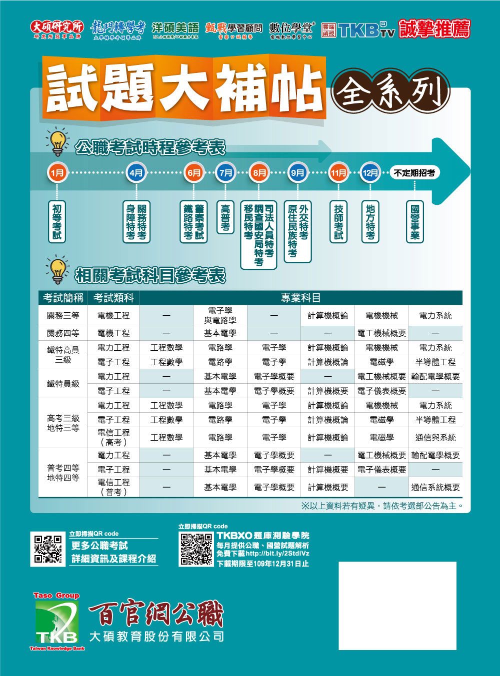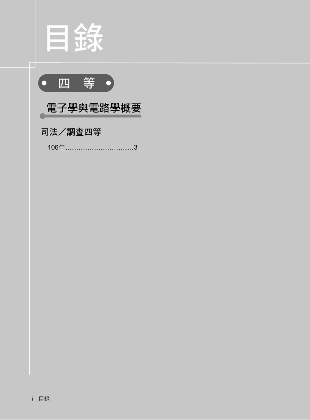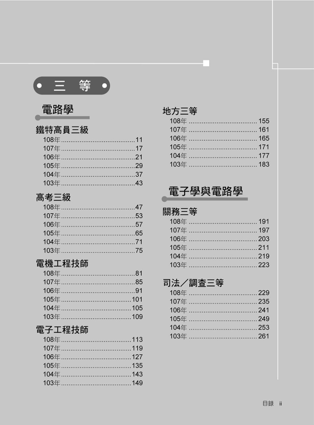 本書收錄考試包含:司法/調查特考、鐵特高員三級、高考三級、電機工程技師、電子工程技師、地方特考、關務三等。