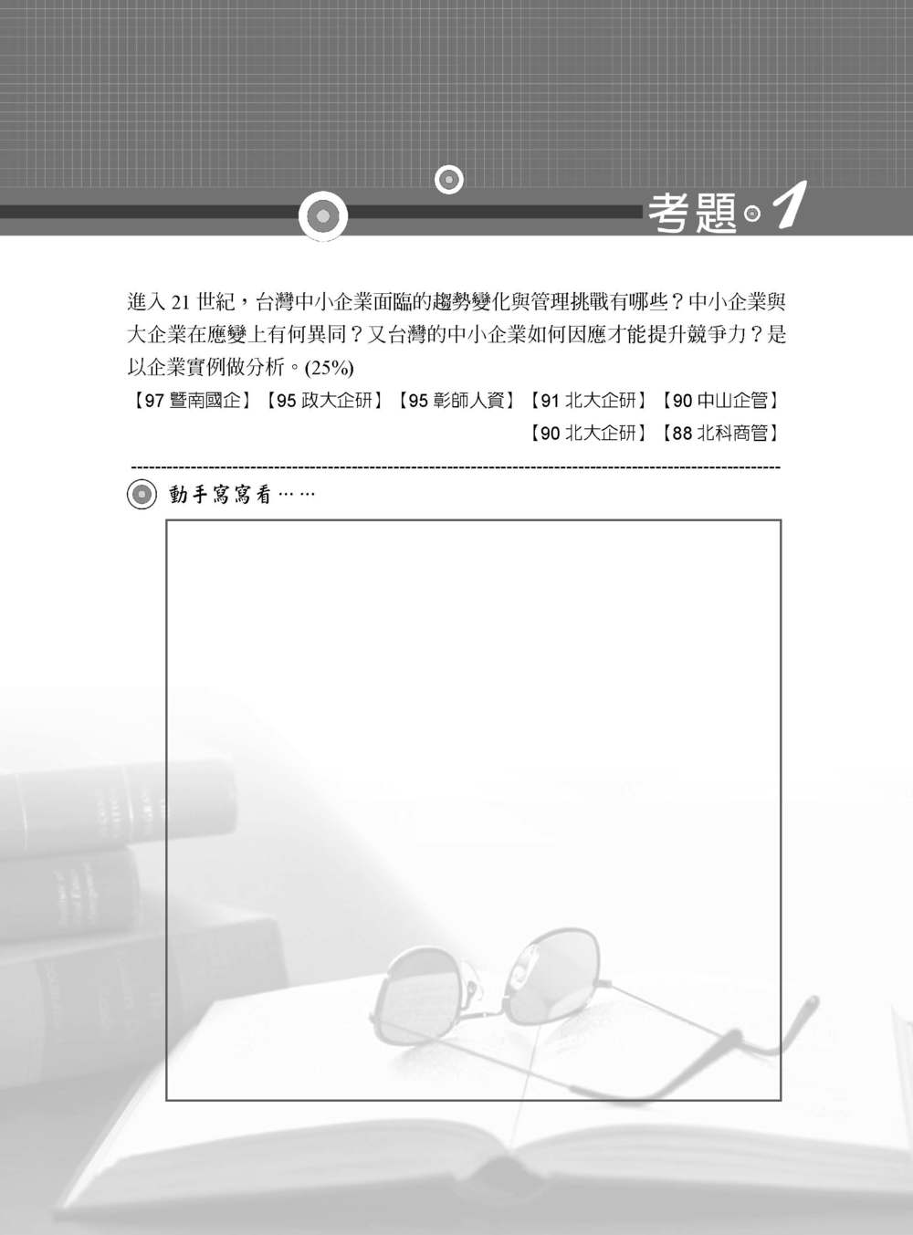 匯集研究所考試中常見的管理學經典題目,協助同學在短時間掌握考題範圍。