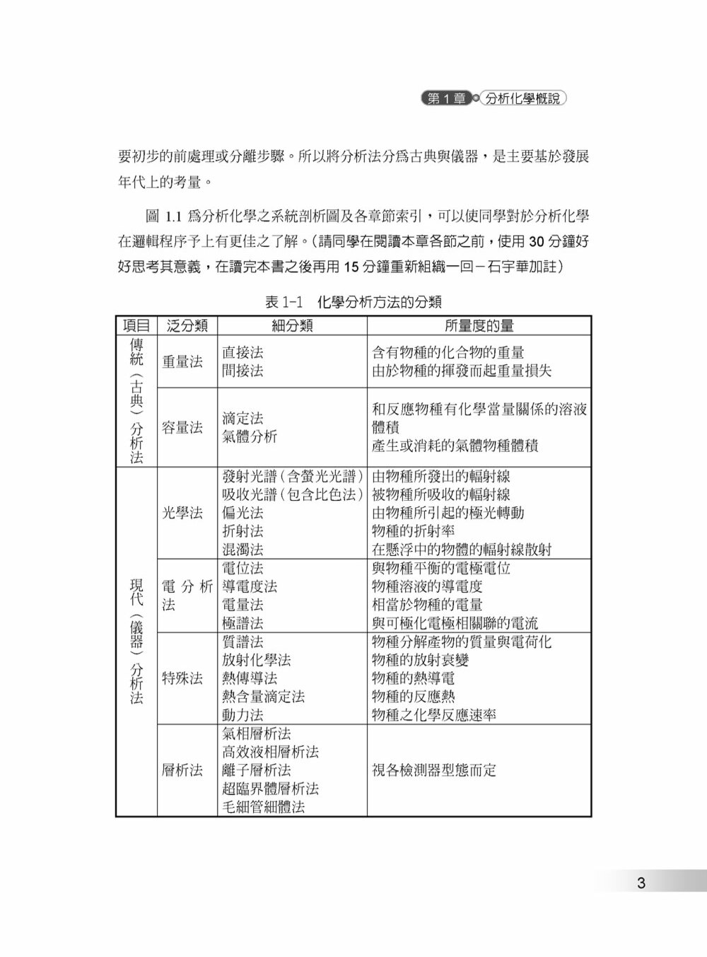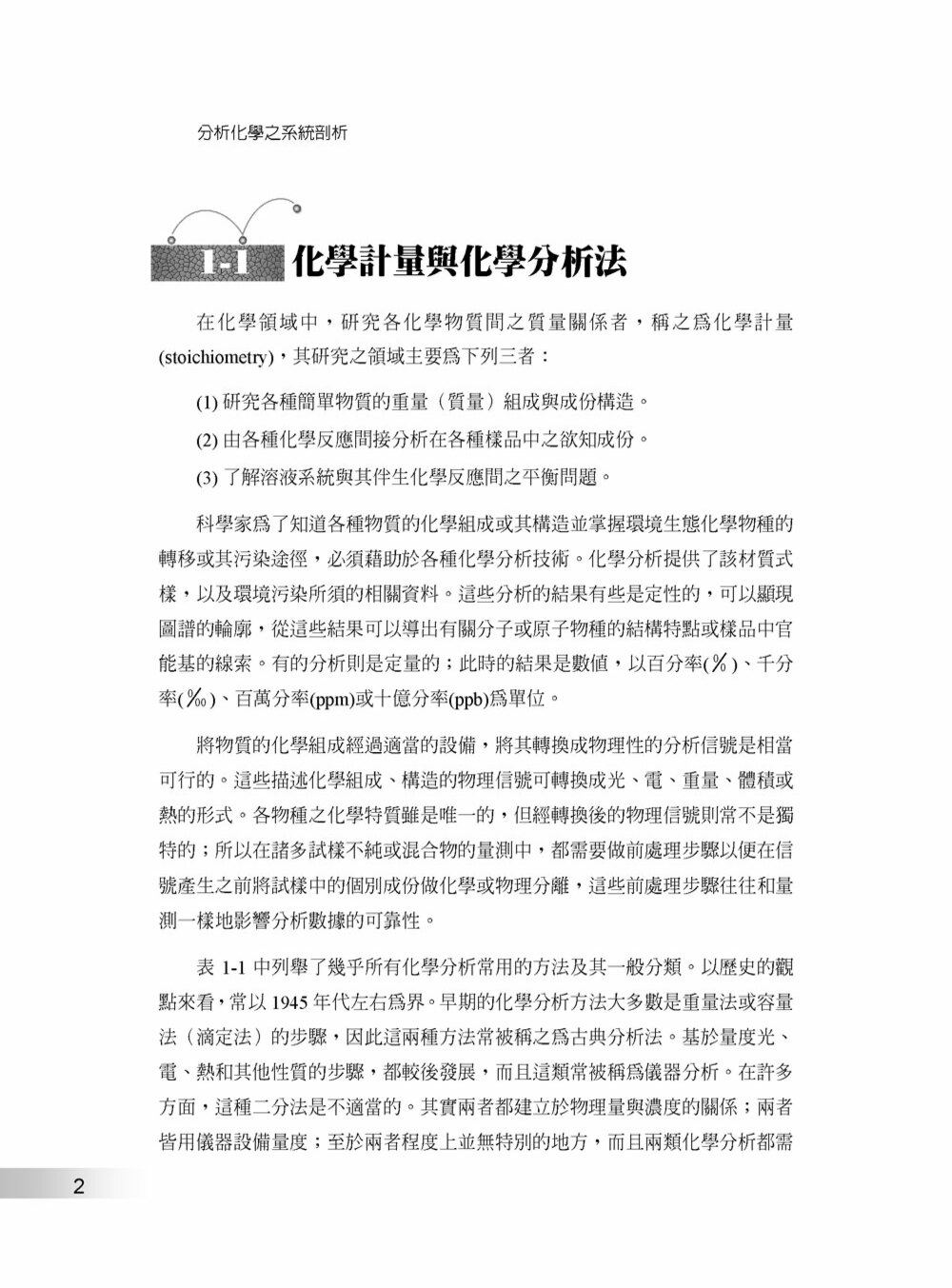 這是一本寫給化學相關科系大學部同學參考的教科書。筆者從事化學、環境分析實務工作,並在大學任教二十餘年,希望藉著編寫這一系列有關參考書籍,把在這期間之教學經驗與工作心得,提出與諸位賢達及同學共同印證檢討,同時也希望以循序漸近的編排方式,有系統地呈現在讀者面前,提供讀者迅速而有效的學習及複習;並對有志升學的同學,能幫助其在分析化學這科目爭取高分。