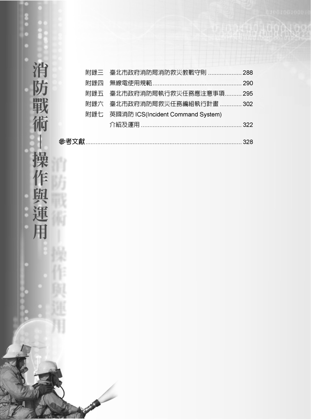 本書將理論與實務作充分結合,作者以豐富的火場搶救作業心得來印證國內外學者專家之立場;書中共分四篇從基本之作業程序介紹對實務操作演練,作者以多年豐富火場指揮救災經驗透過一系列之狀況推演與實際搶救的範例,引導讀者輕鬆且有系統地學習「消防戰術」之技能。本書可作為消防科系學生之極佳教材,第一線消防救災工作人員手邊必備的工具書,更是消防學術研究人員不可或缺的實務資料。