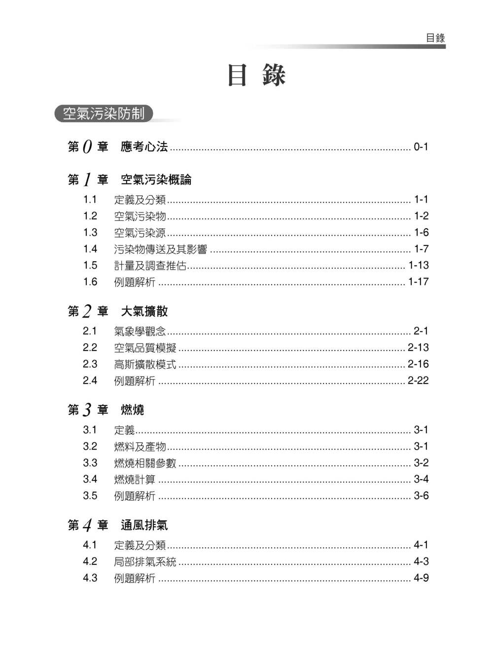 本書編著內容及範圍,適用於準備環境類科之相關國家考試,包括高考、普考、特考、技師考,同時也適用於經濟部所屬國營事業機構(台電、中油、台水、台糖)新進人員聯合招考之環工類別考試。由於前述國家考試中「空氣污染控制」及「噪音管制」兩項科目係合併為一個應考科目,且歷年該兩項科目之出題佔分比重均約為70~80%:20~30%,故本書內容亦依據其各別出題佔分比例分配著作篇幅,並於每章最後隨附對應之代表性歷屆考題及完整解答,以利讀者掌握應考方向及快速練習答題方式與技巧,縮短複習所需時間並且建立日後應考信心。
