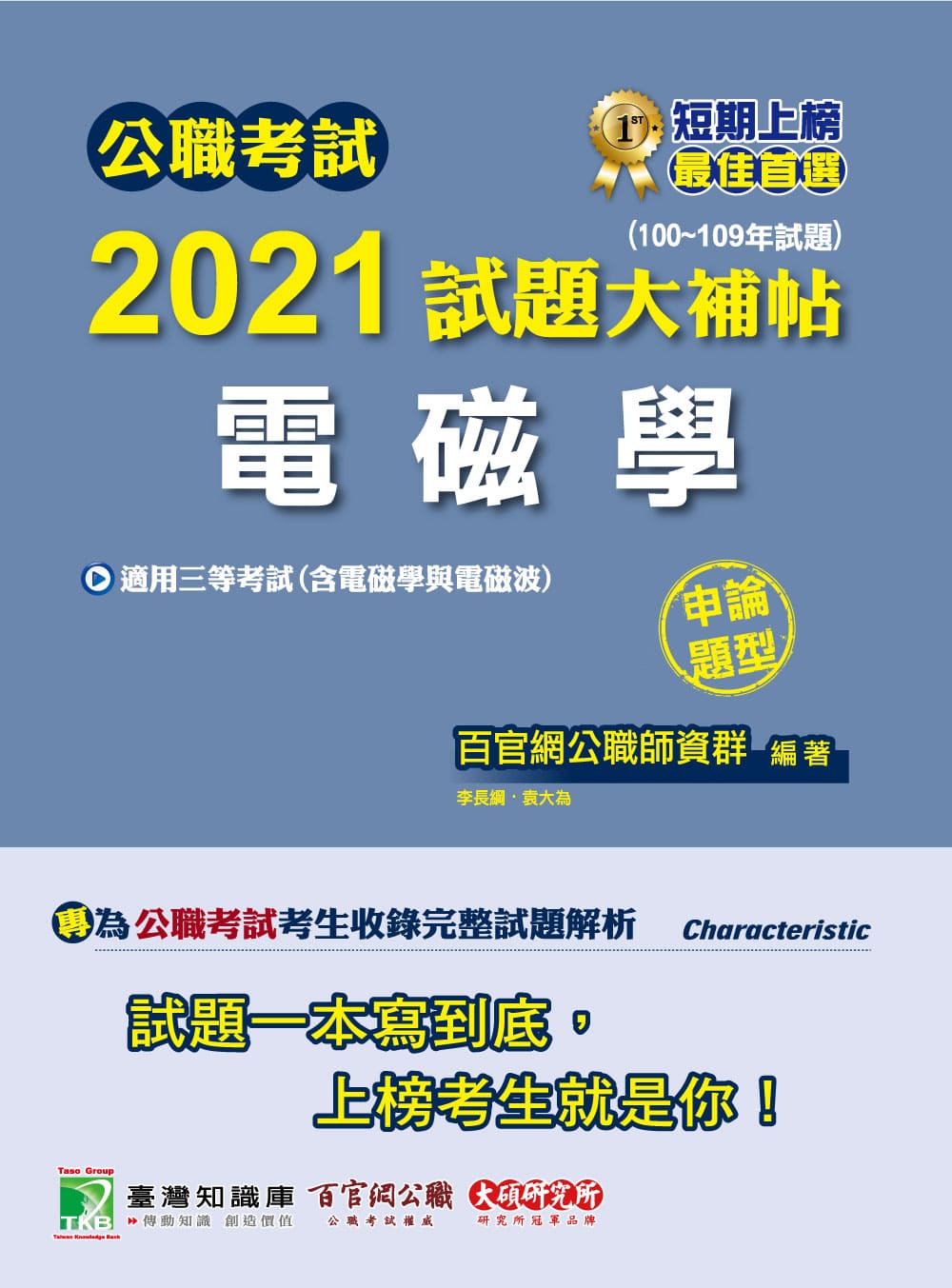 本書收錄公職考試【電磁學(含電磁學與電磁波)】100~109年共十年的申論試題詳解,幫助您一次準備全面應戰、熟悉題型順利上榜。
