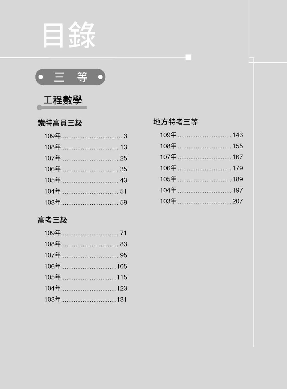 本書收錄考試包含:高考三級、鐵路特考、地方特考