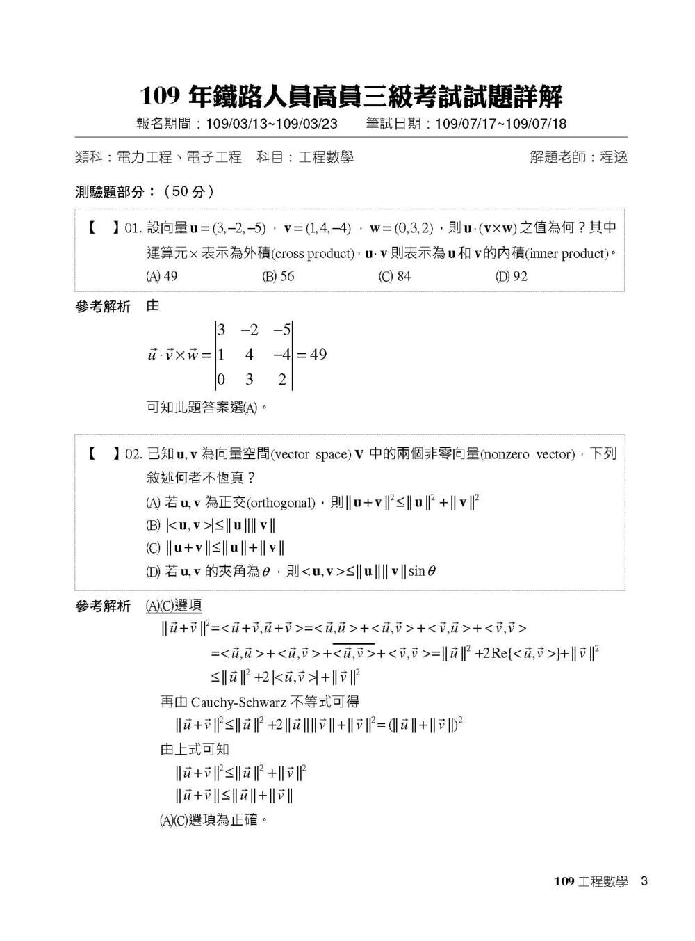 1. CK02030101 公職考試2021試題大補帖【工程數學】(103~109年試題)(申論題型)[適用三等/鐵特、高考、調查特考、技師考試、地方特考]