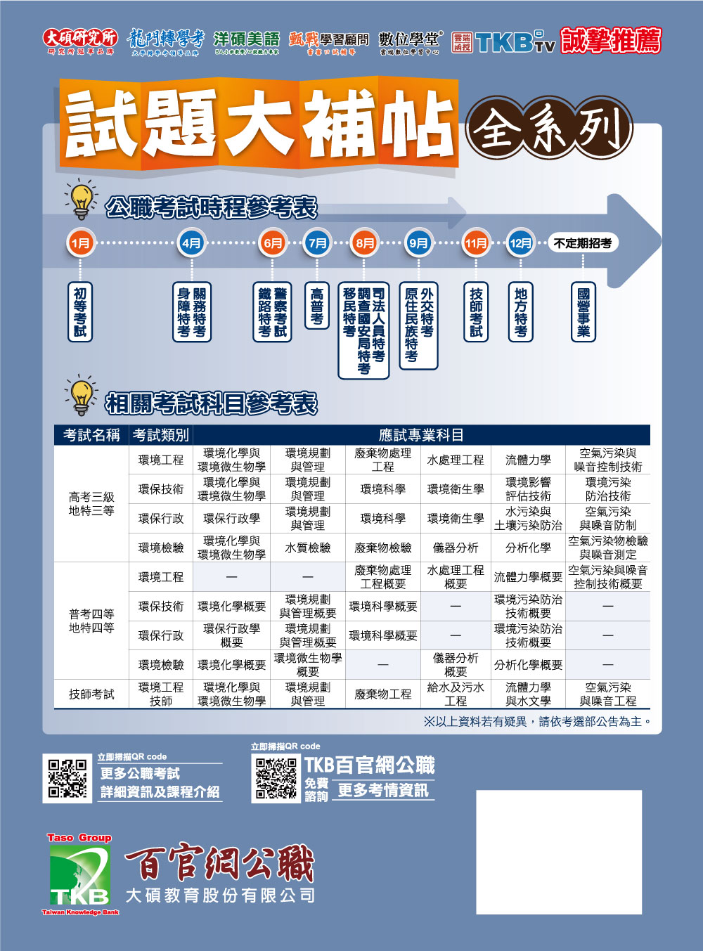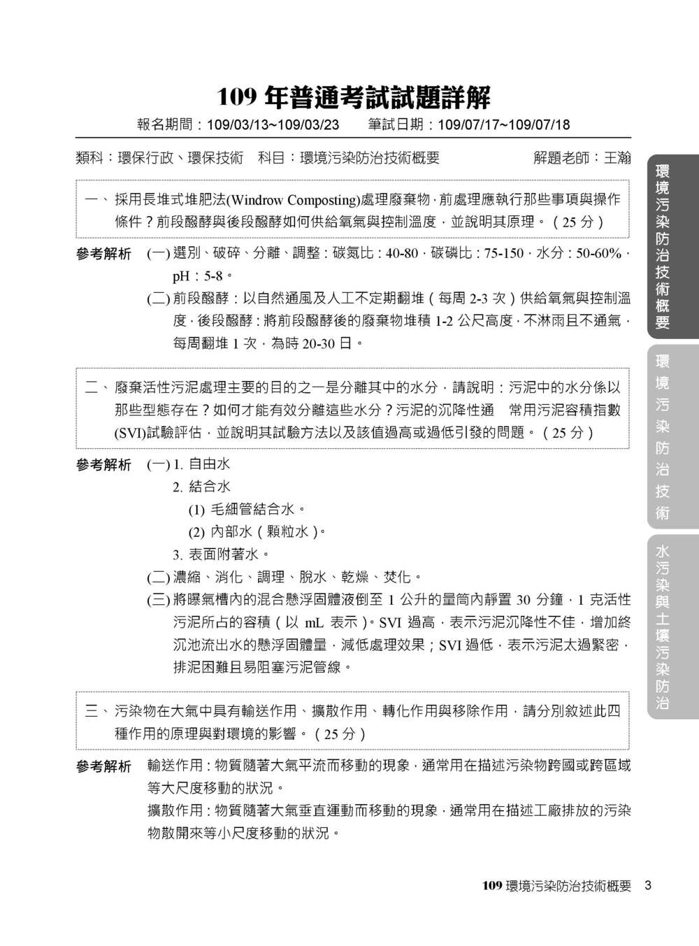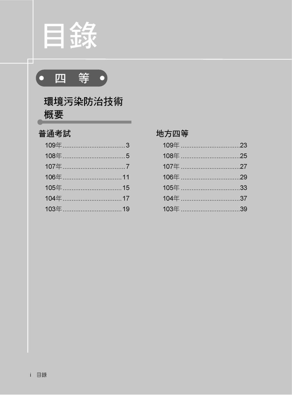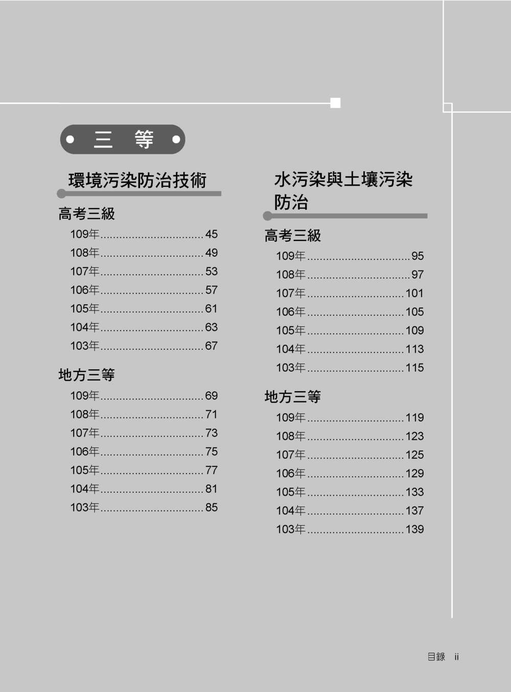 本書收錄科目包含:環境污染防治技術概要、環境污染防治技術、水污染與土壤污染防治