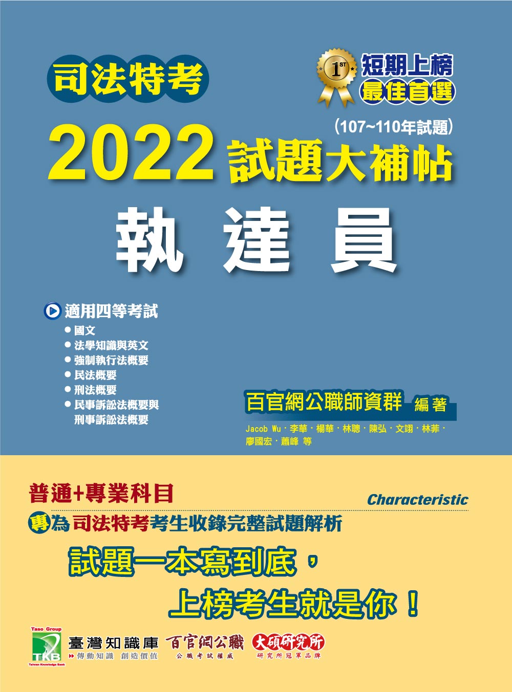 本書專為【司法特考】考生出版的解題書,完整收錄司法特考(四等)普通+專業科目【執達員】107~110年共四年試題含解析。