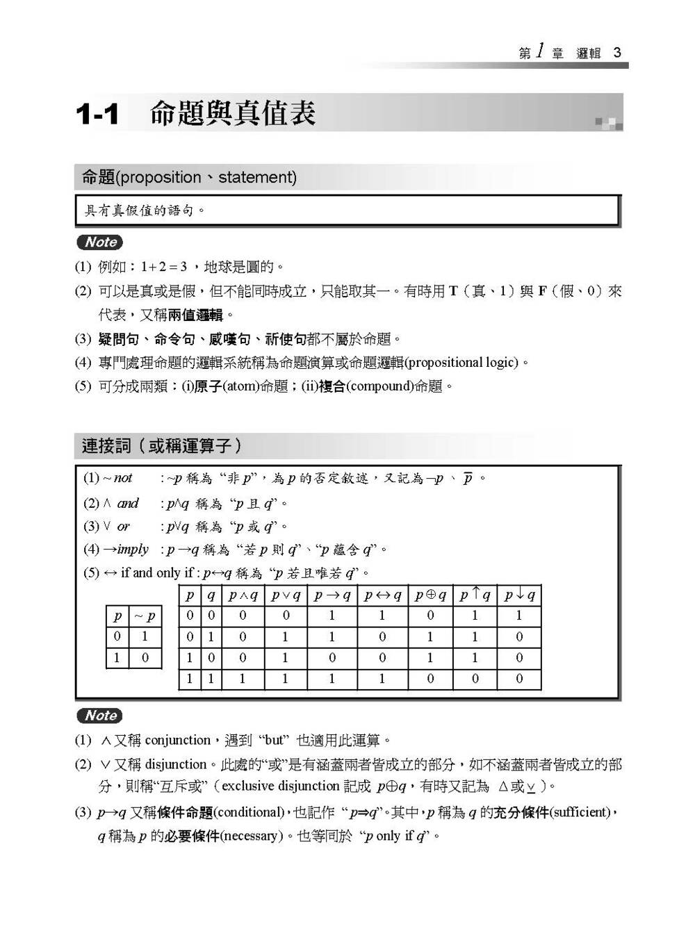 1-1 命題與真值表