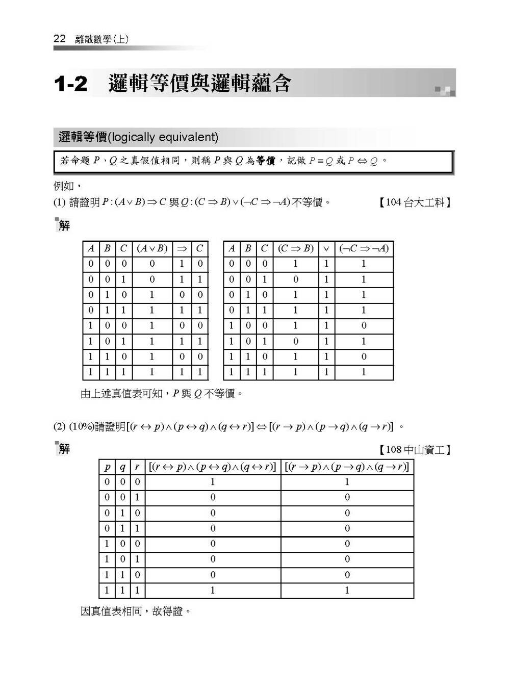 1-2 邏輯等價與邏輯蘊含
