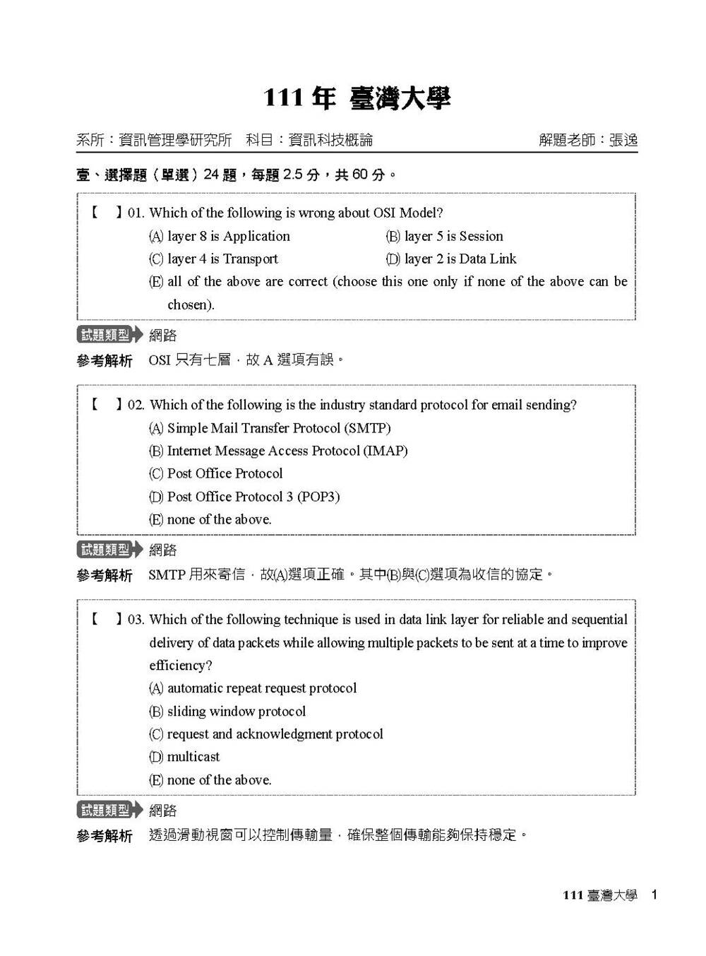 本書收錄國內各重點大學研究所109~111年【計算機概論】共三年試題含解析。