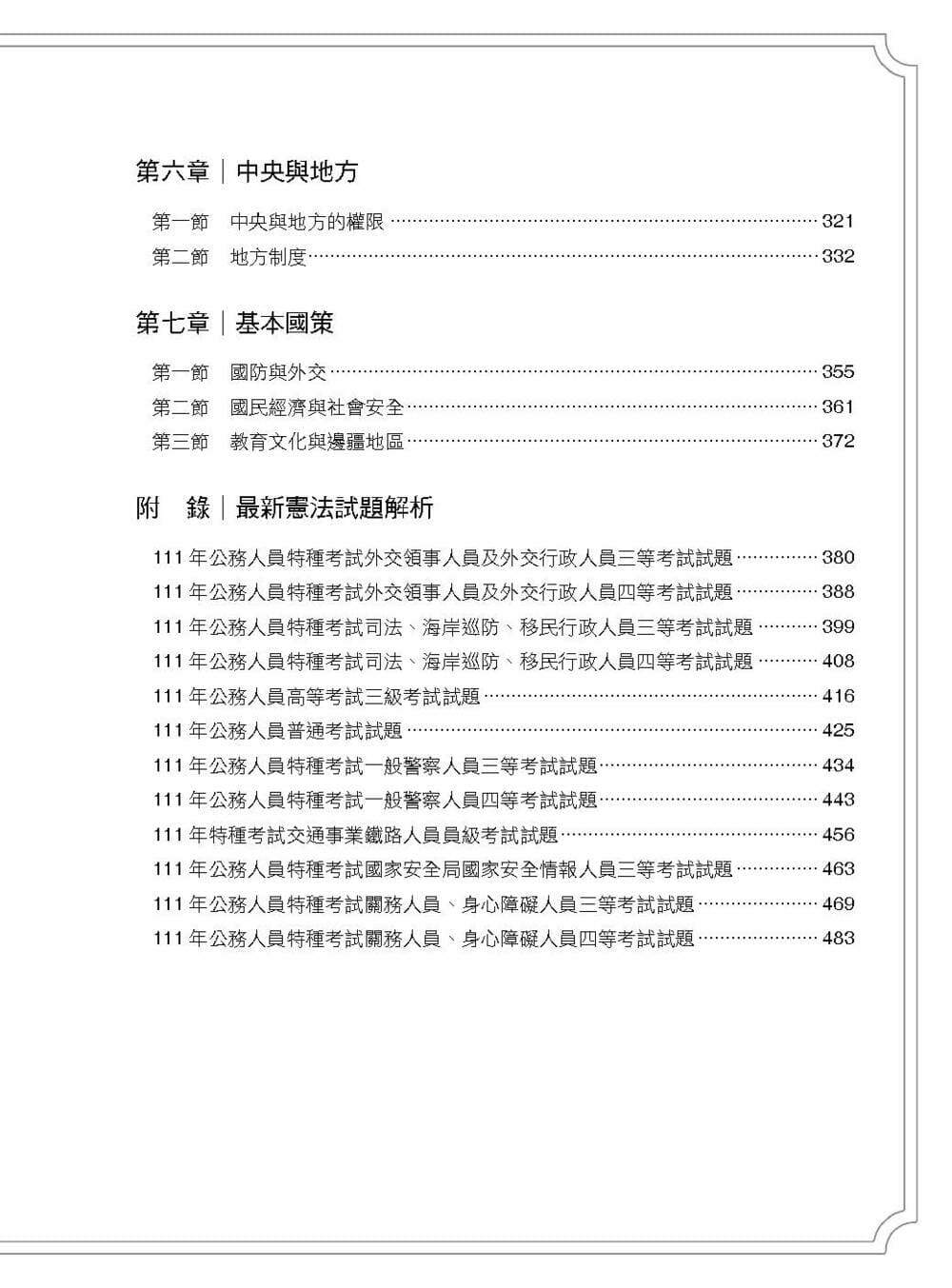 本書完整收錄111年最新憲法試題,每個考題及選項皆精確解析相關法源依據,讀者藉由演練考古題除能提升實戰經驗,更能達到極巨化應試能力的學習效果。