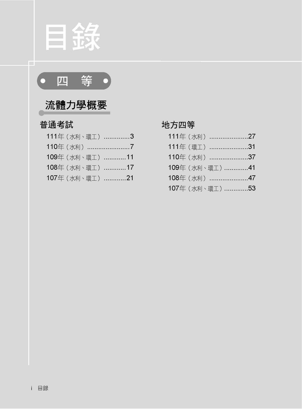 本書收錄公職考試【流體力學】107~111年共五年的申論試題詳解,幫助您一次準備全面應戰、熟悉題型順利上榜。