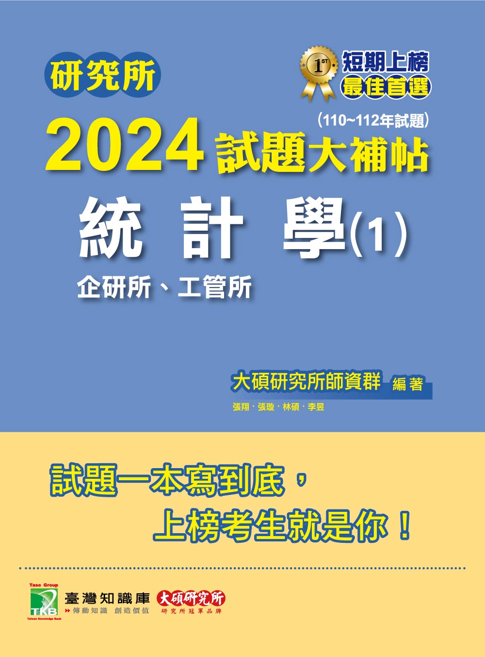 研究所2024試題大補帖【統計學(1)企研所、工管所】(110~112年試題)[適用臺大、政大、清大、陽明交通、北大、中央、成大、中山、臺科大、臺師大、中正研究所考試](CD2103)