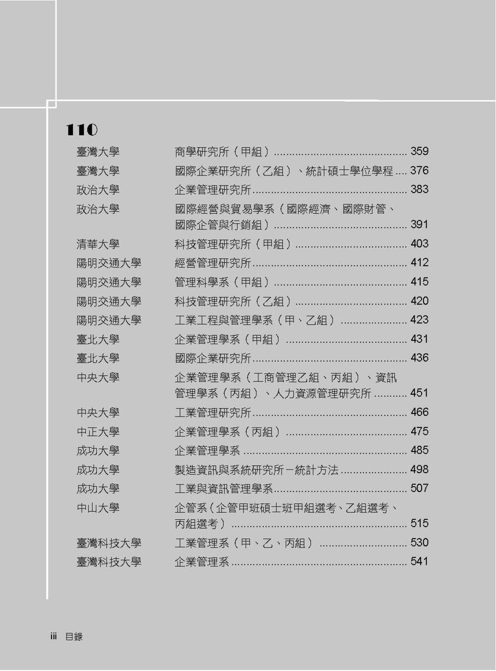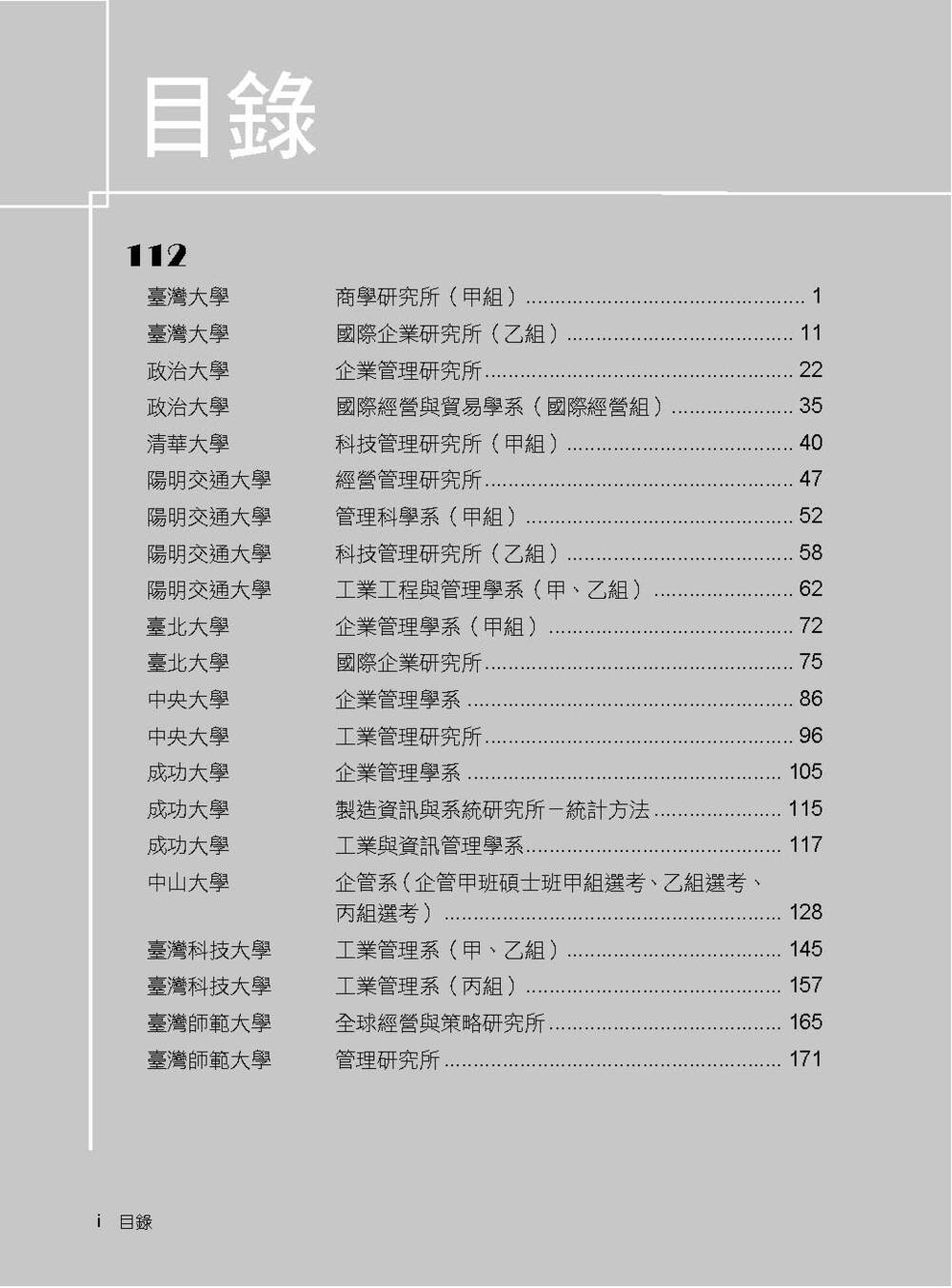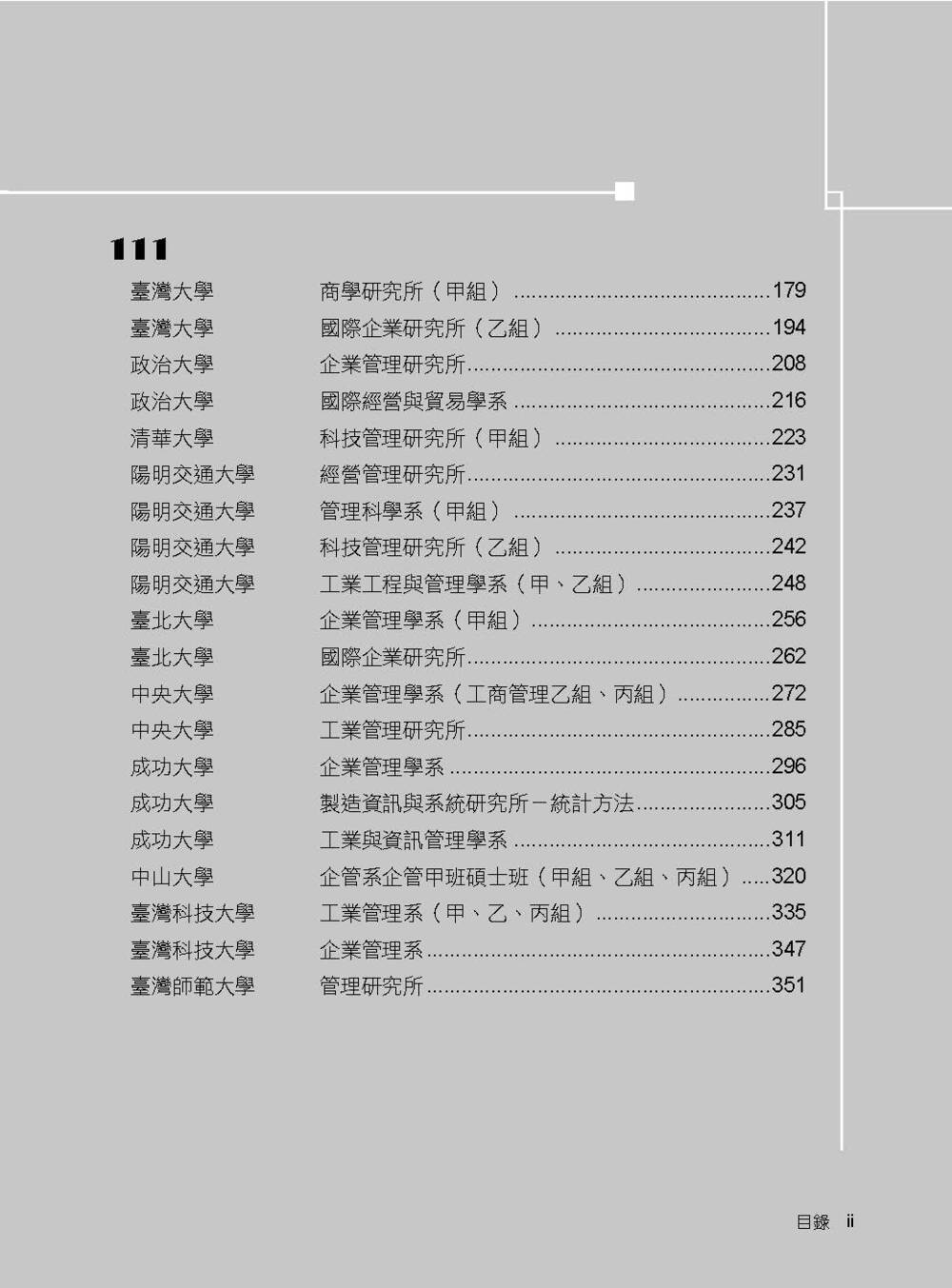 本書收錄學校:臺灣大學、政治大學、清華大學、陽明交通大學、臺北大學、中央大學、成功大學、中山大學、臺灣科技大學、臺灣師範大學、中正大學
