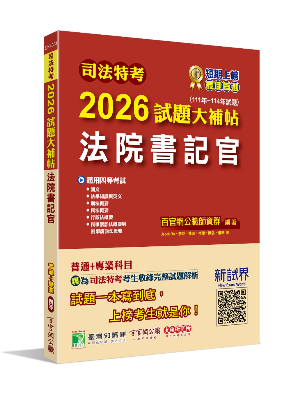 全新【大碩教育2024司法特考試題大補帖】,一本專為考生打造的類科試題書,不論共同或專業科目,備考應戰無煩惱!