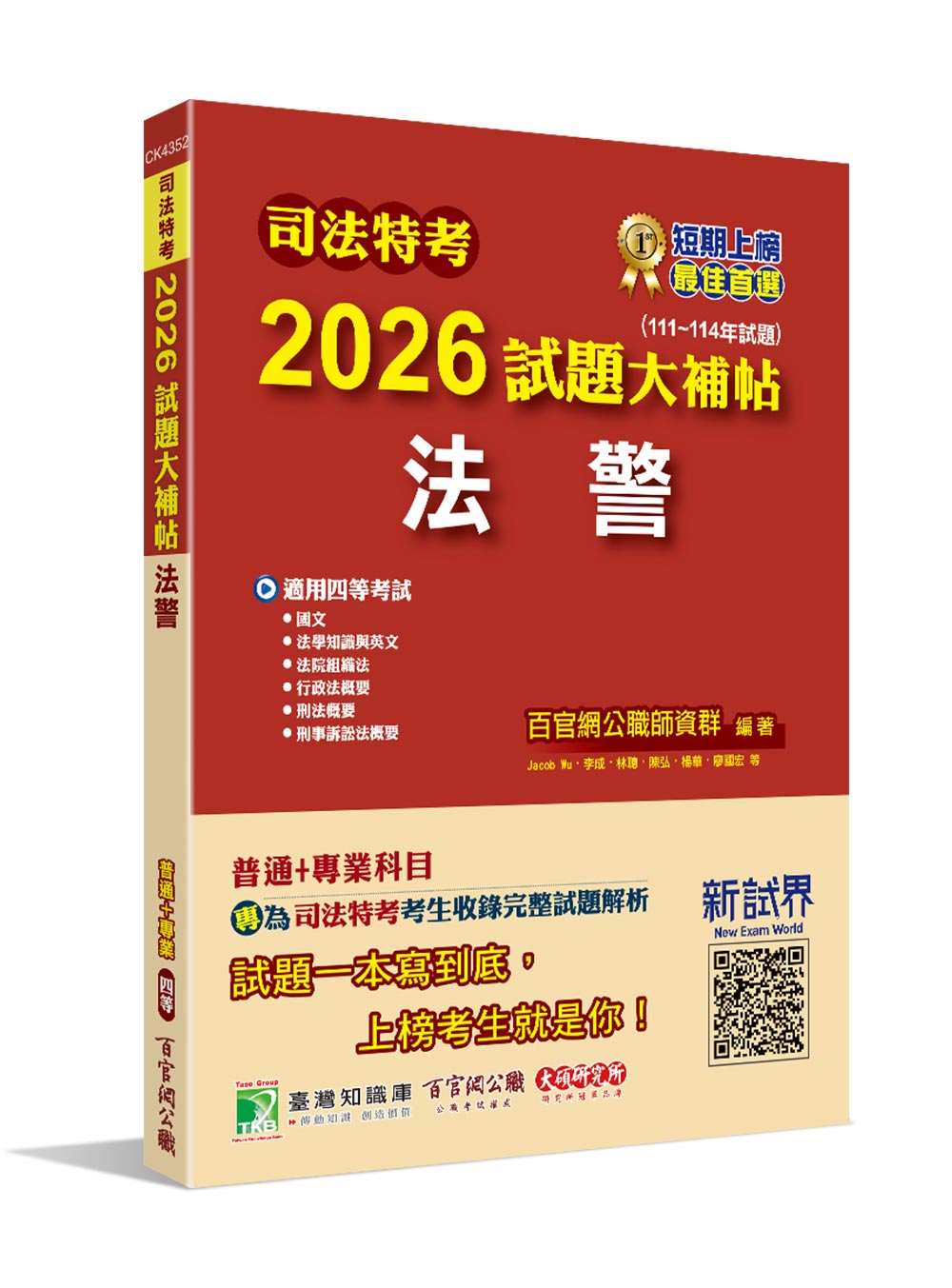 書籍內含考試科目:國文、公民、英文、法學大意、民事訴訟法大意與刑事訴訟法大意