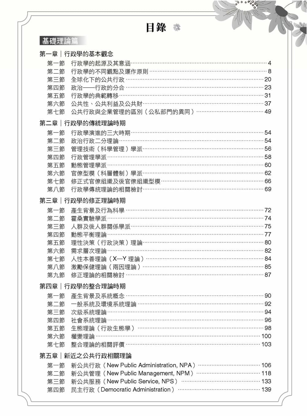本書為了讓同學們能夠有效準備,彙整了近百本公共行政領域的教科書與專著,並結合近十數年國家考試的命題方向,將整體架構區分為四大篇(基礎理論篇、組織理論篇、行政理論篇及其他概論篇);另外,除了章節目錄、參考書目之外,其各項索引(主題、國外學者、專有名詞)更讓本書具備強大的檢索機制,而同時具備了「講義書」、「辭典書」及「工具書」三大功能。