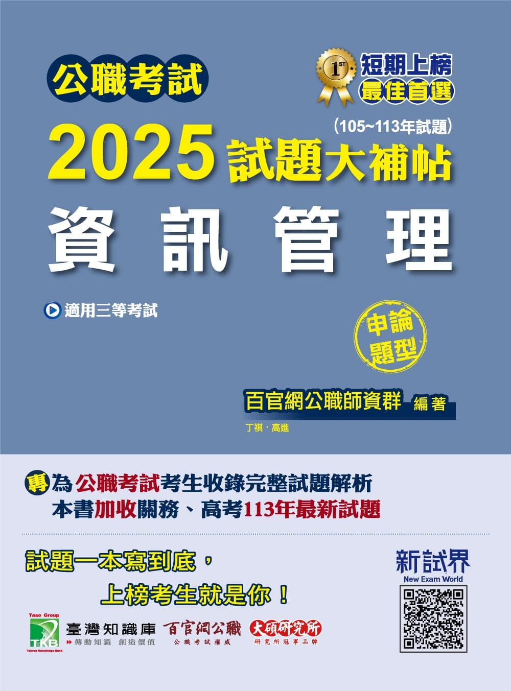 公職考試2025試題大補帖【資訊管理】(105~113年試題)(申論題型)[適用三等/高考、關務、地方特考](CK4215)