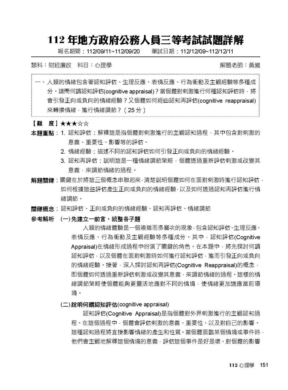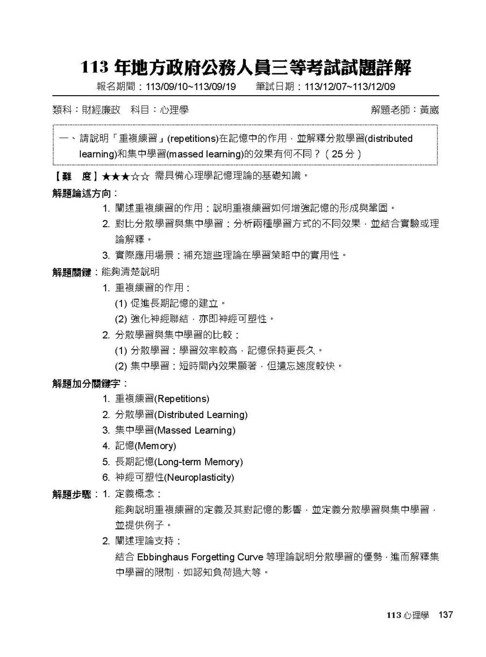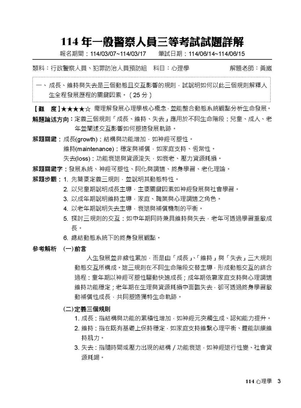 公職考試2026試題大補帖【心理學】(106~114年試題)(申論題型)[適用三等/高考、地方特考、警察特考](CK5115)