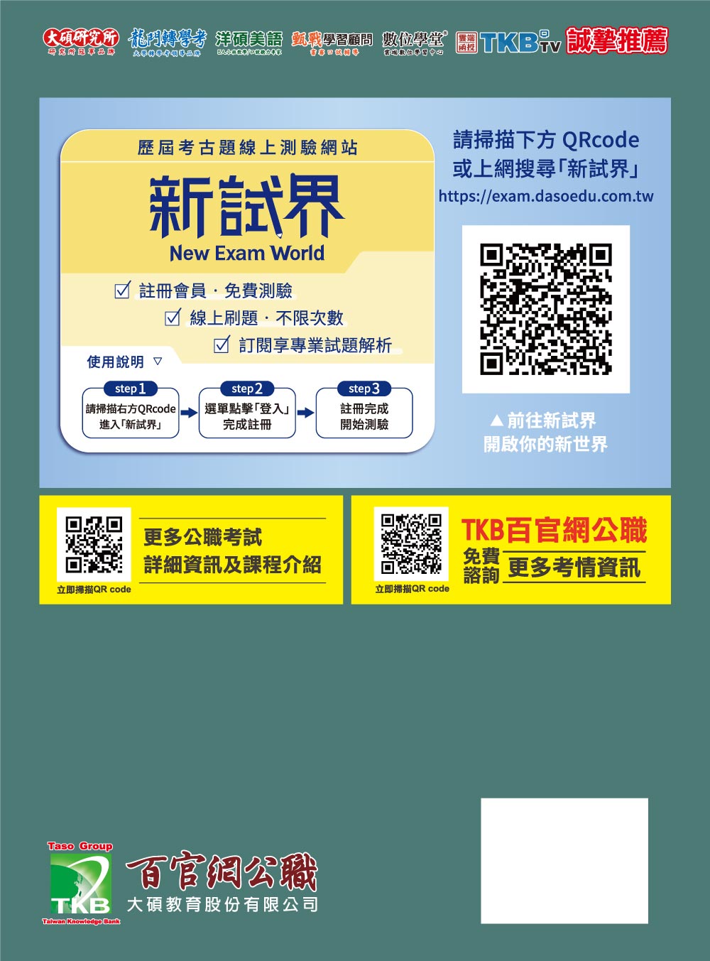 3. 試題大補帖搭配百官網,買書即贈200分鐘免費試聽課程。