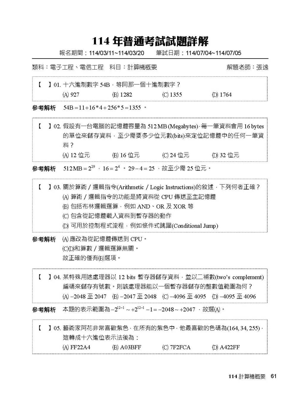 公職考試2026試題大補帖【計算機概要】(110~114年試題)(測驗題型)[適用四等/關務、普考、地方特考](CK5406)