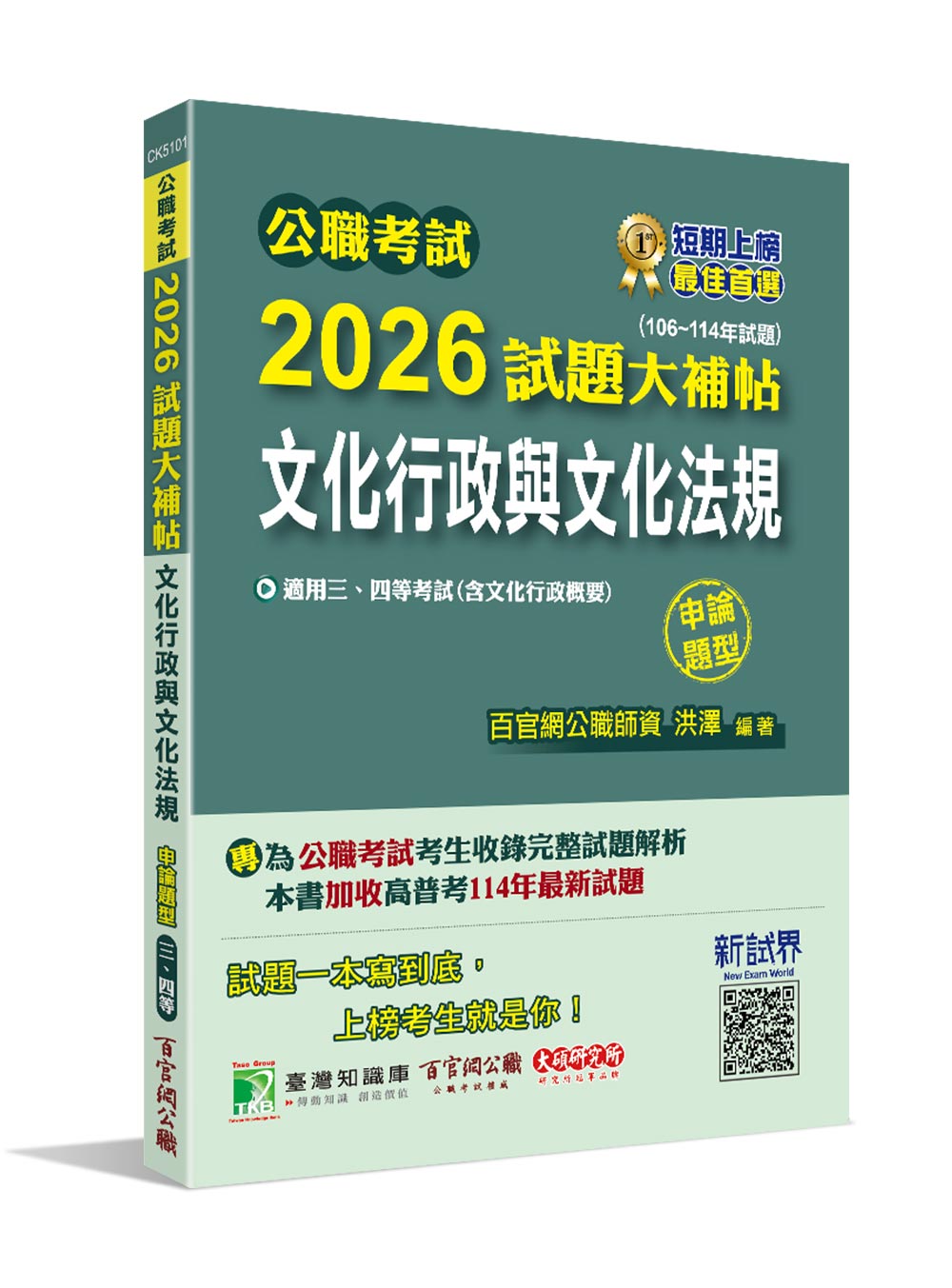 公職考試試題大補帖系列提供報考這類考試的考生,精選多年度公職考試歷屆試題演練書,考生只需購買一本書,即可抓住各公職考試科目的重點題型。