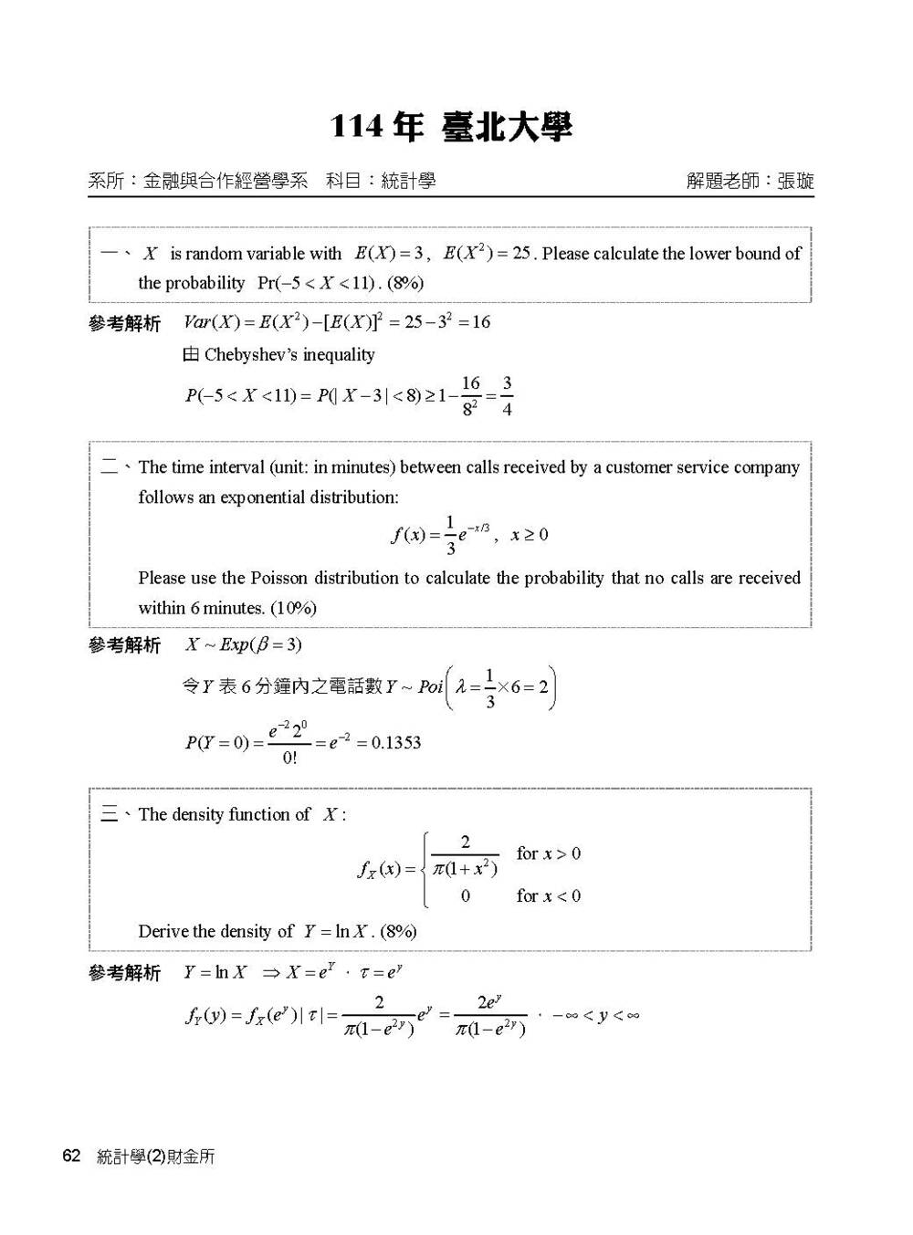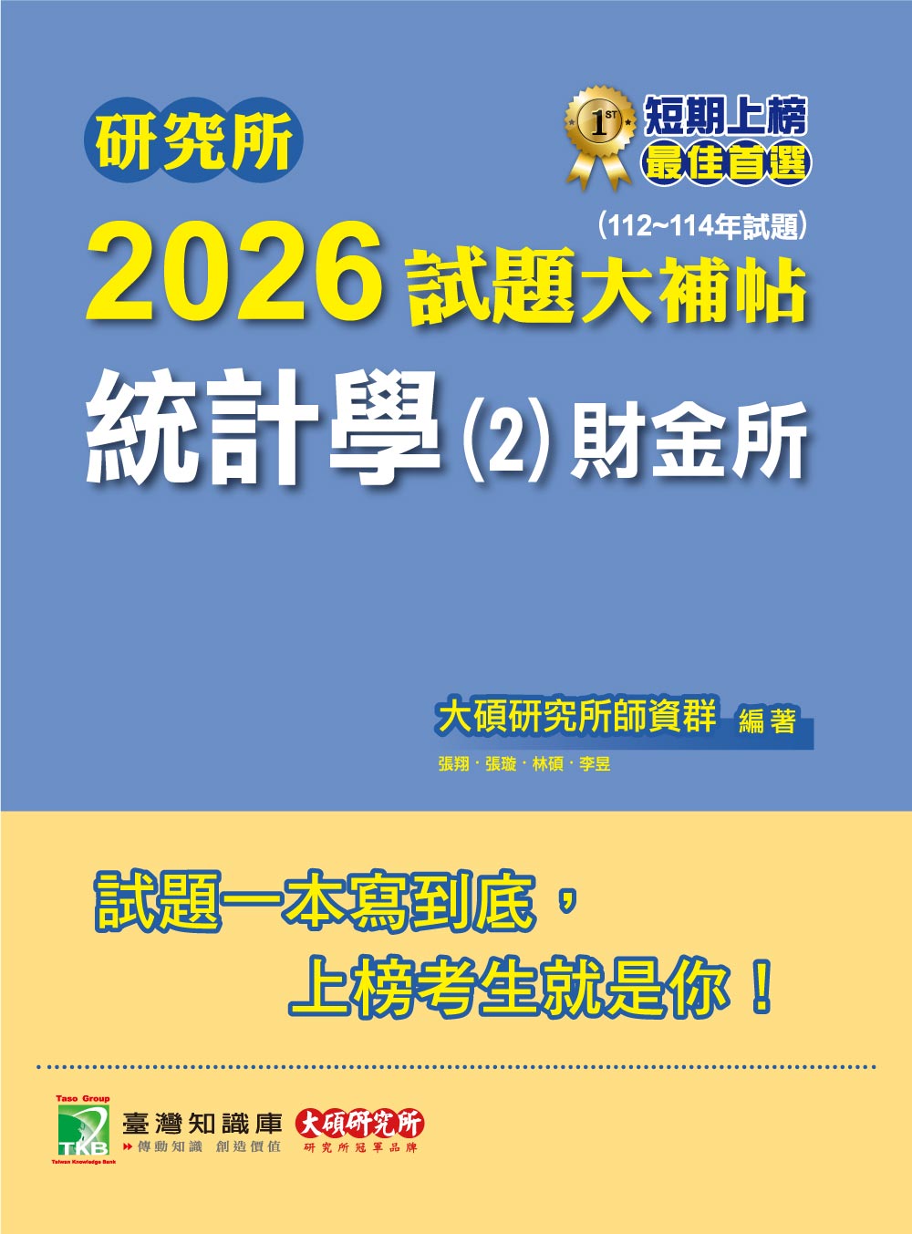 研究所2026試題大補帖【統計學(2)財金所】(112~114年試題)[適用臺大、政大、清大、陽明交通、北大、中正、成大、中山研究所考試](CD4104)