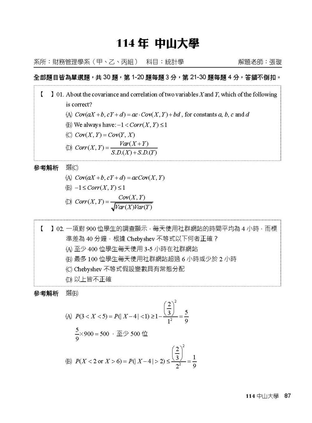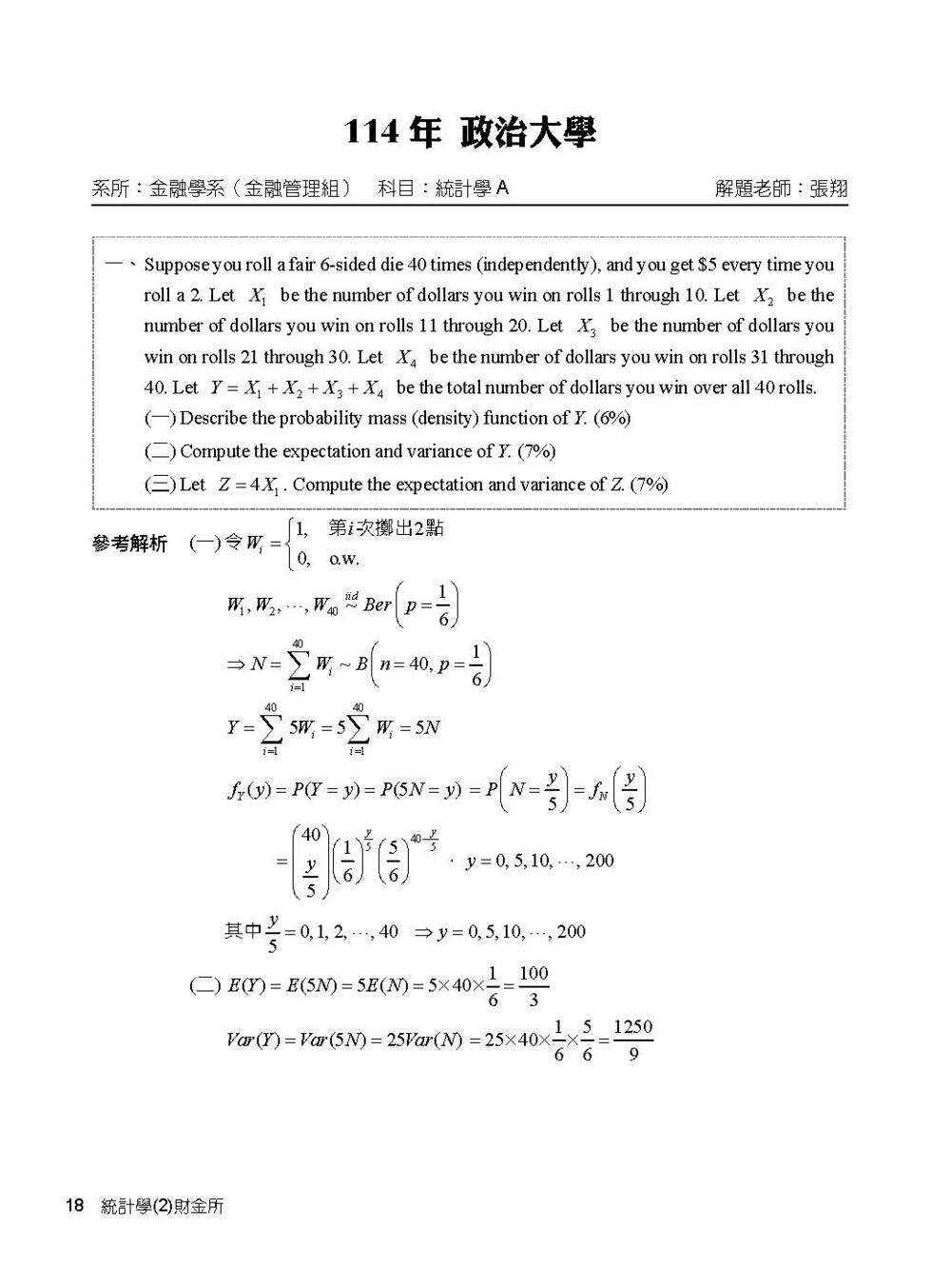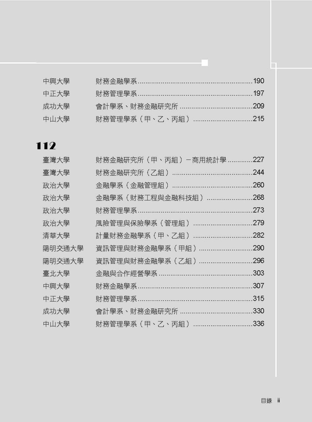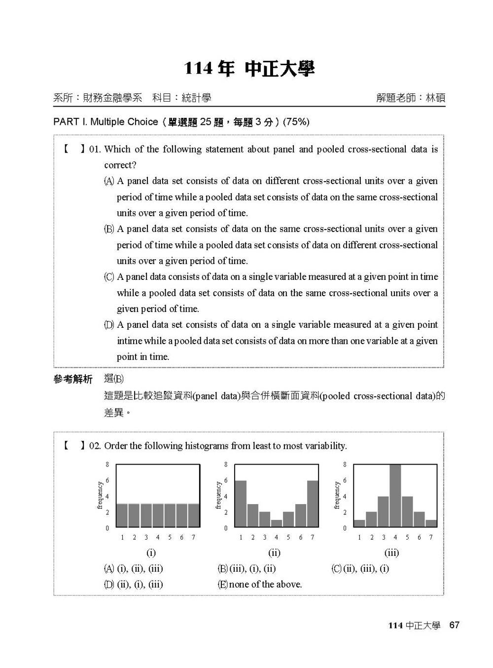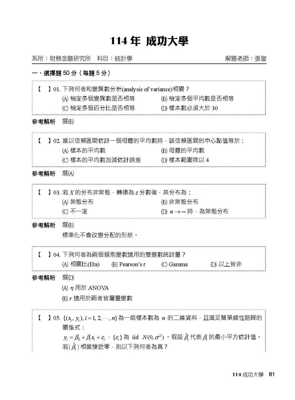 1.本書收錄國內各重點大學財金所112~114年【統計學】共三年試題含解析。