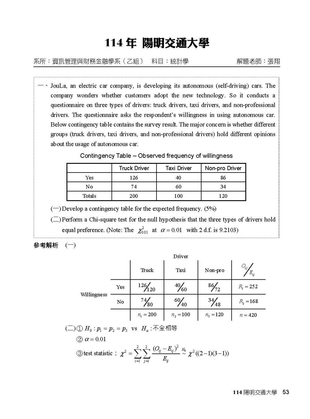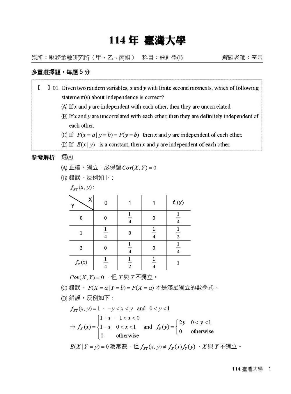 臺灣大學    財務金融研究所(甲、丙組)-商用統計學