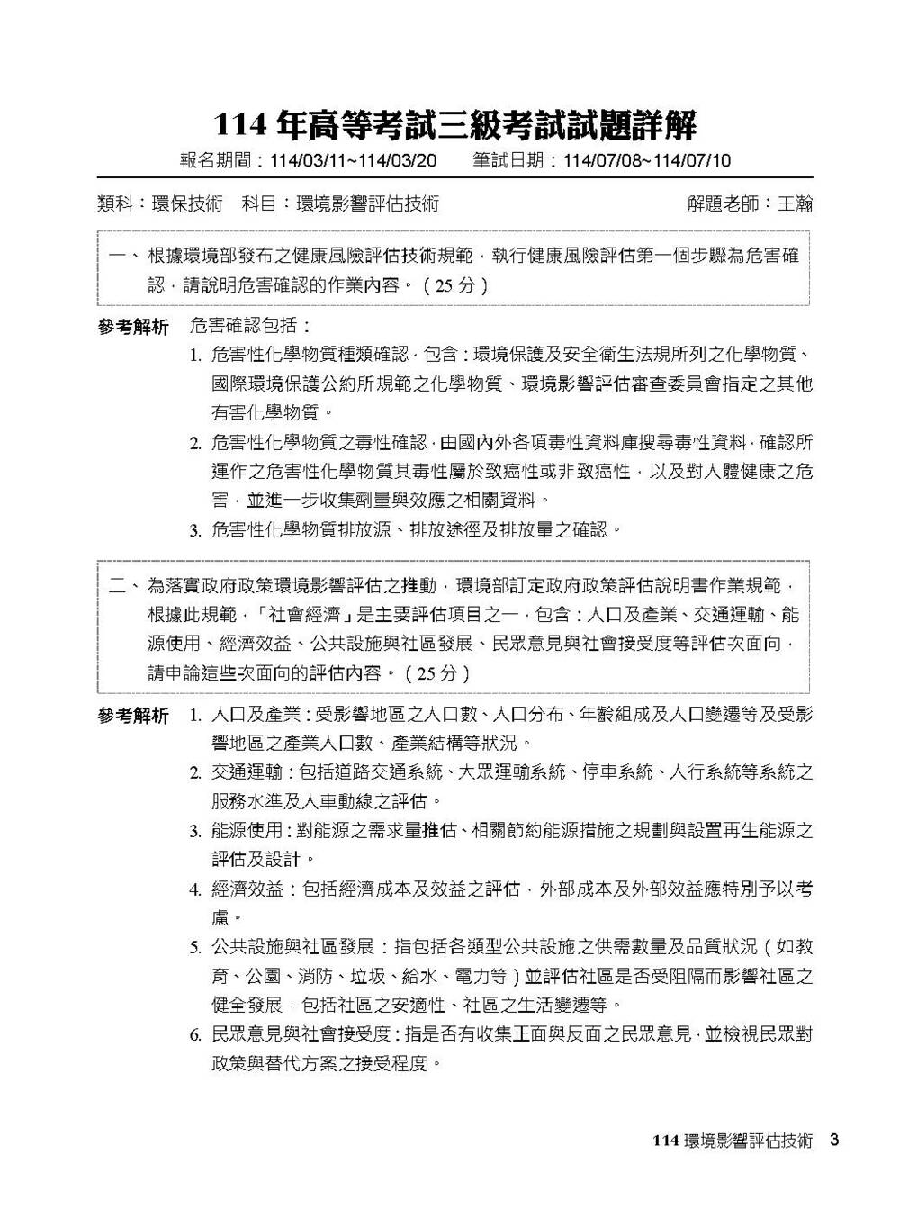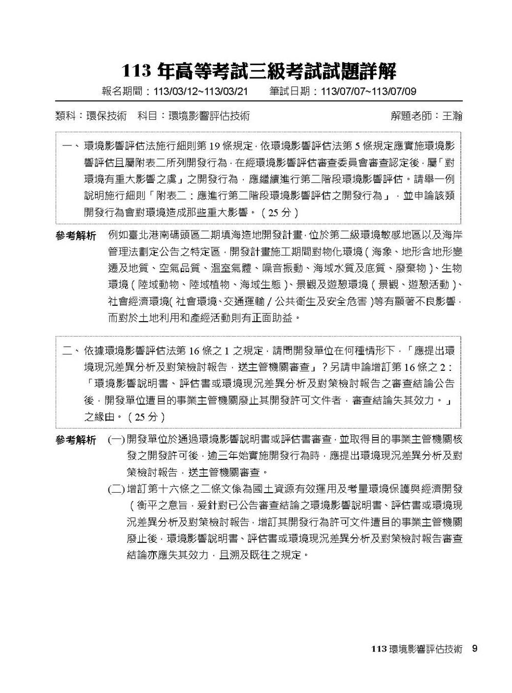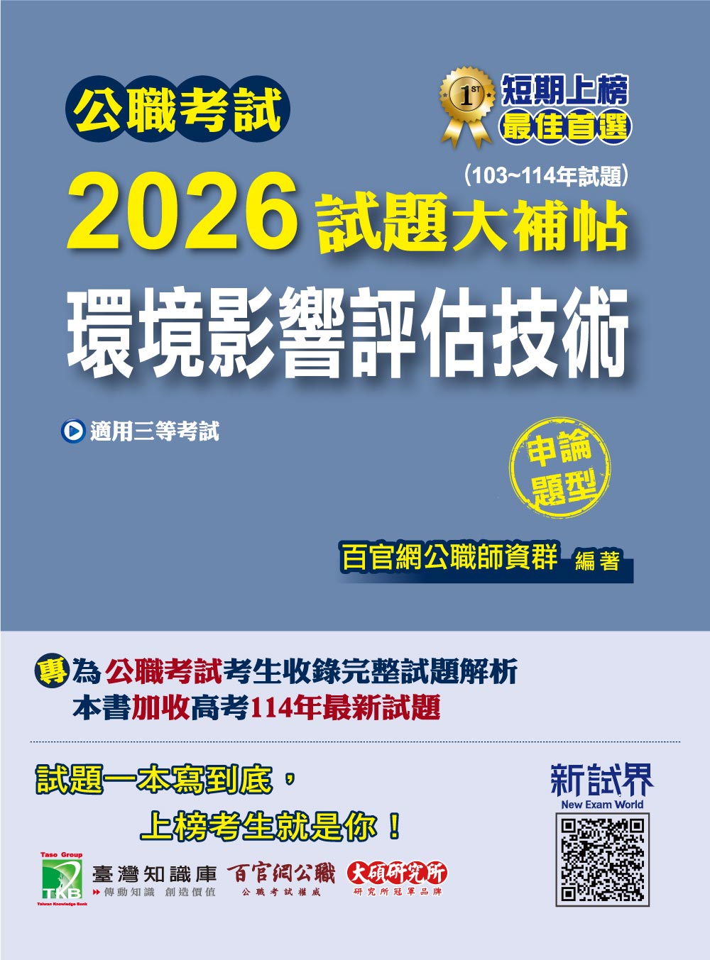 公職考試2026試題大補帖【環境影響評估技術】(103~114年試題)(申論題型)[適用三等/高考、地方特考](CK5233)