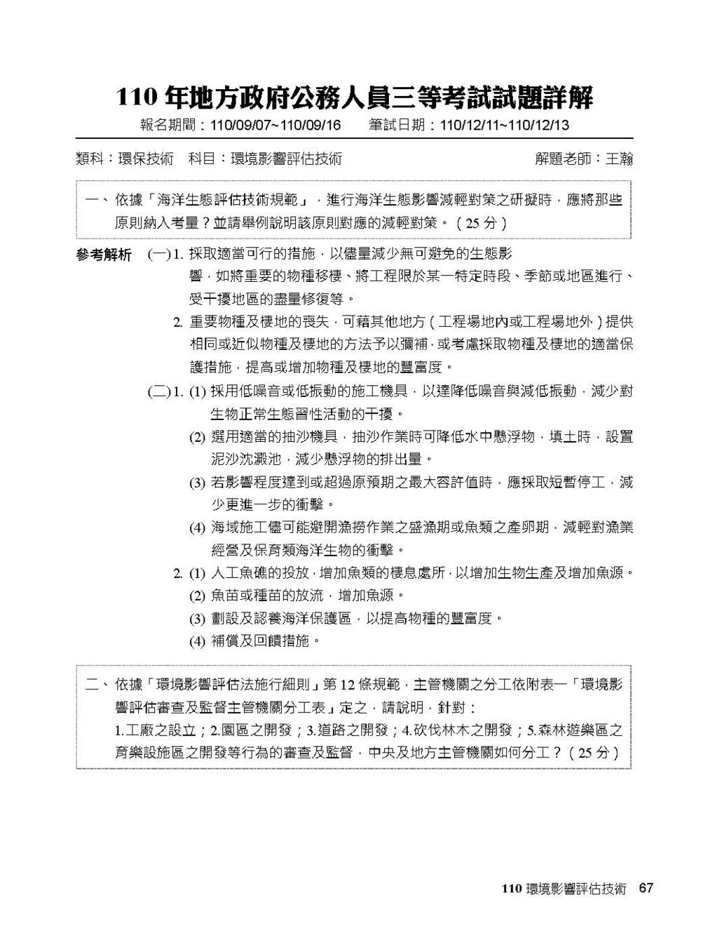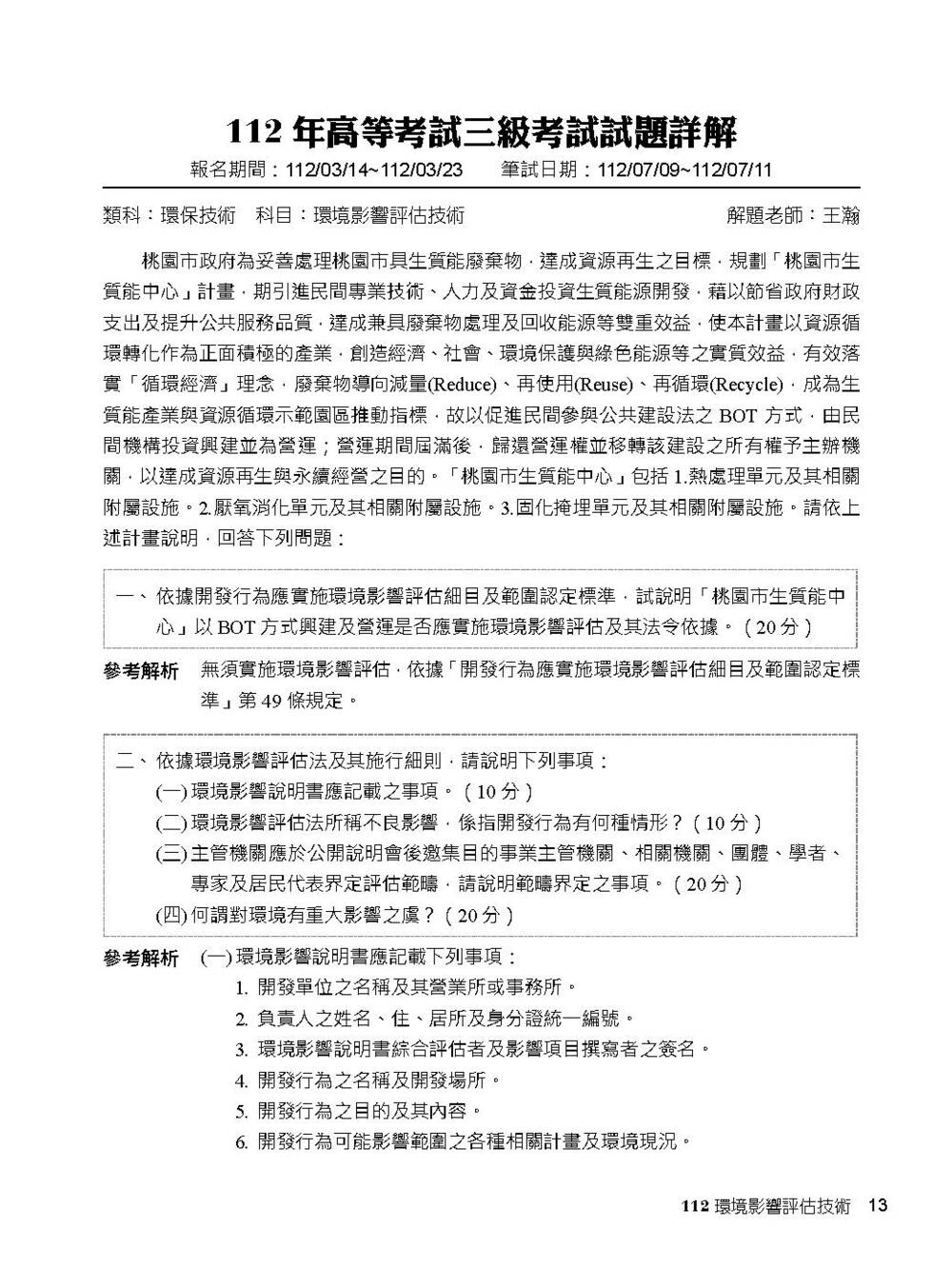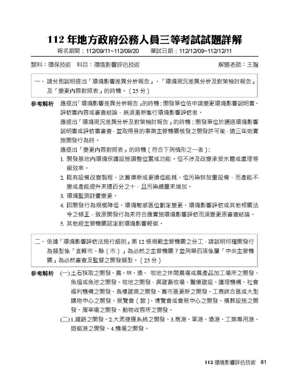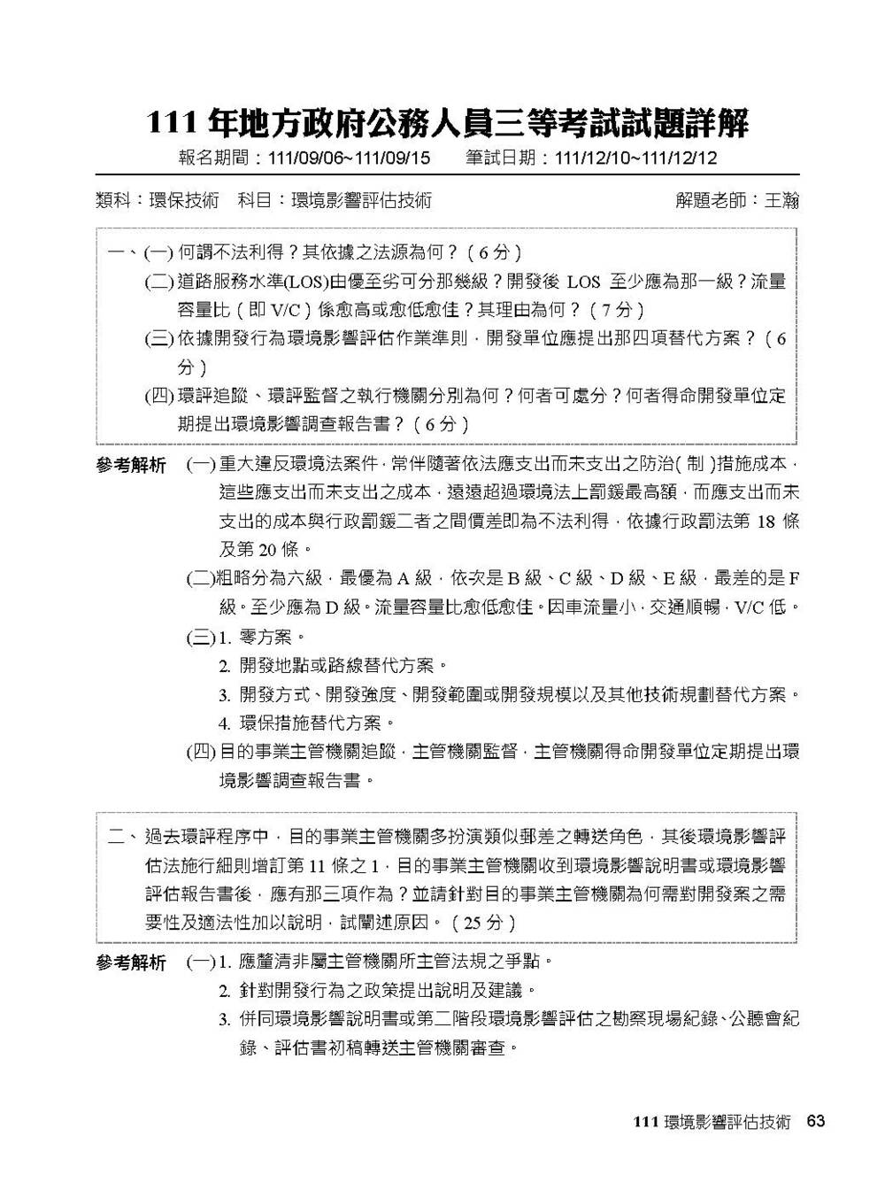 公職考試2026試題大補帖【環境影響評估技術】(103~114年試題)(申論題型)[適用三等/高考、地方特考](CK5233)