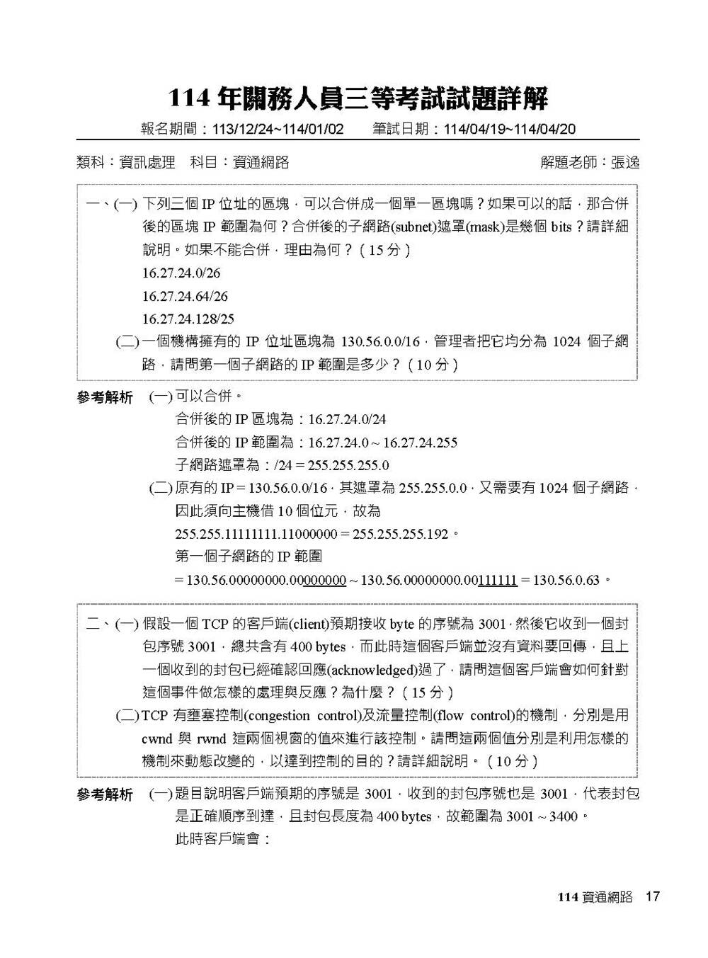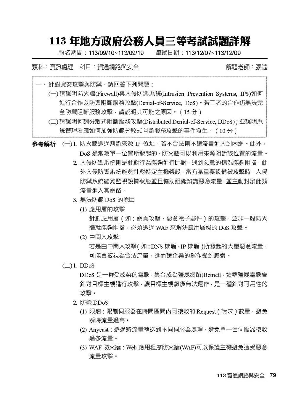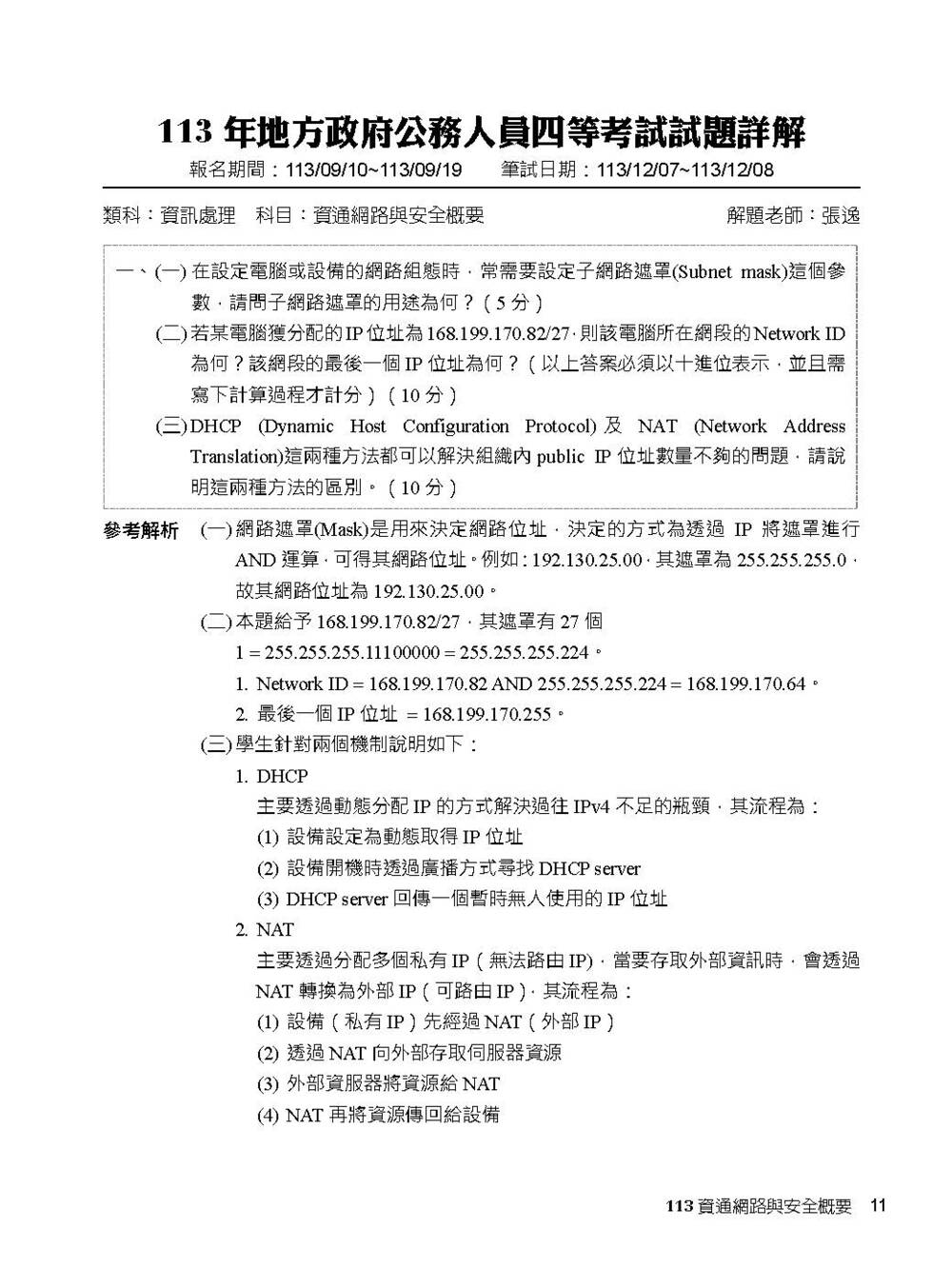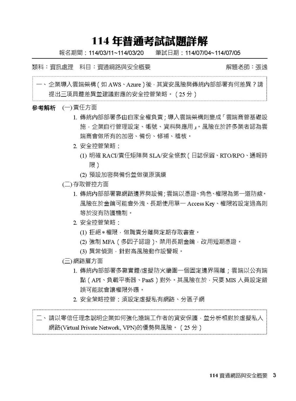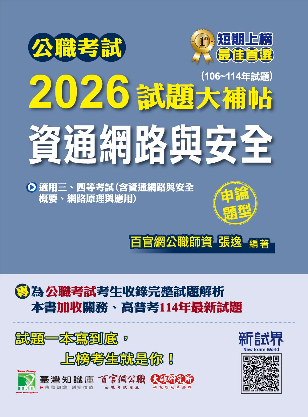 公職考試2026試題大補帖【資通網路與安全】(106~114年試題)(申論題型)[適用三等、四等/高考、普考、關務、地方特考、技師考試](CK5217)