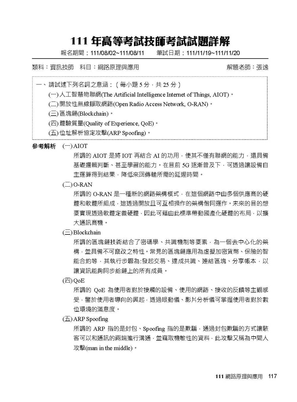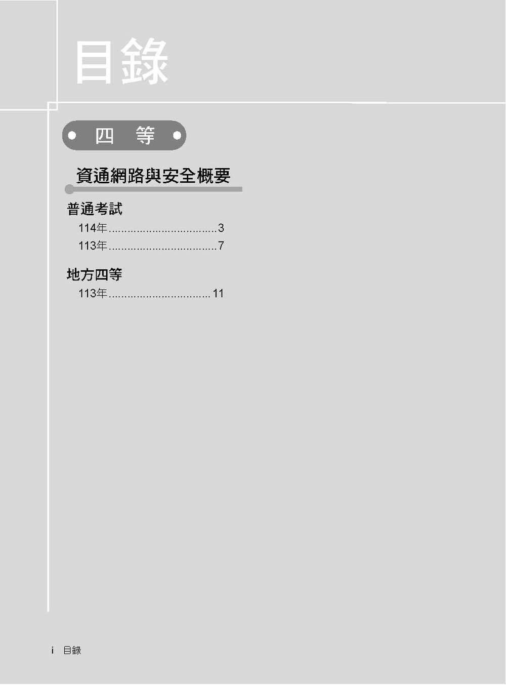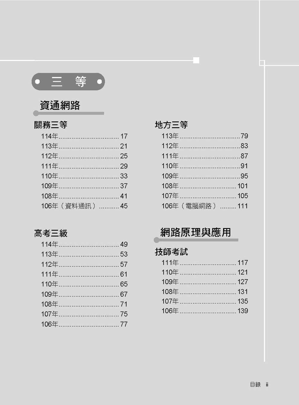 本書收錄科目包含:資通網路、資通網路與安全概要、網路原理與應用