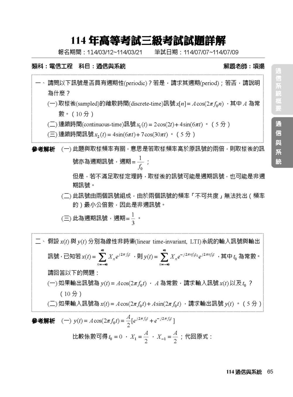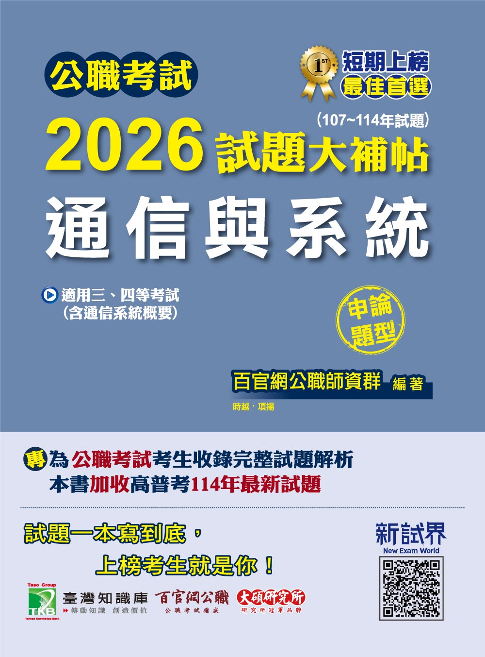 公職考試2026試題大補帖【通信與系統(含通信系統概要)】(107~114年試題)(申論題型)[適用三等、四等/高考、普考、地方特考](CK5209)
