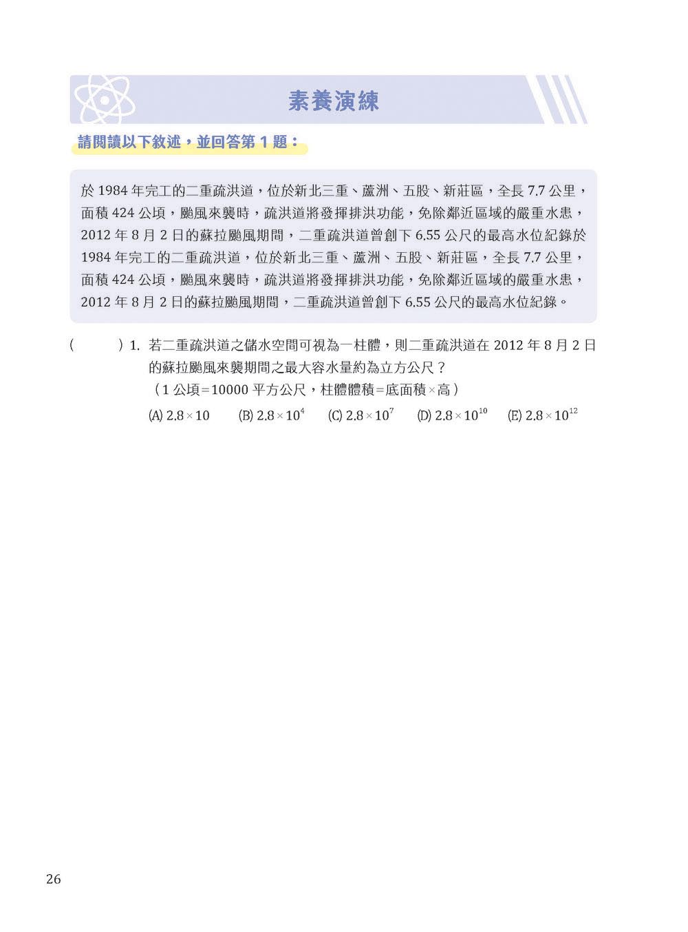 本部分提供閱讀文章或段落文字描述,培養學生在閱讀複雜文本後,能判斷對應的知識點並進行作答。透過題目情境的設計,引導學生將物理概念應用於生活中,更好地因應108課綱的素養題趨勢。