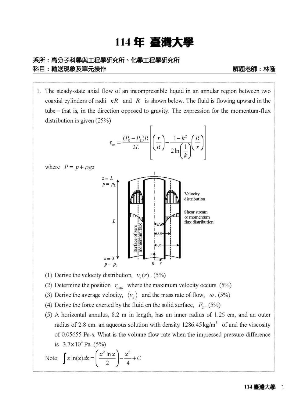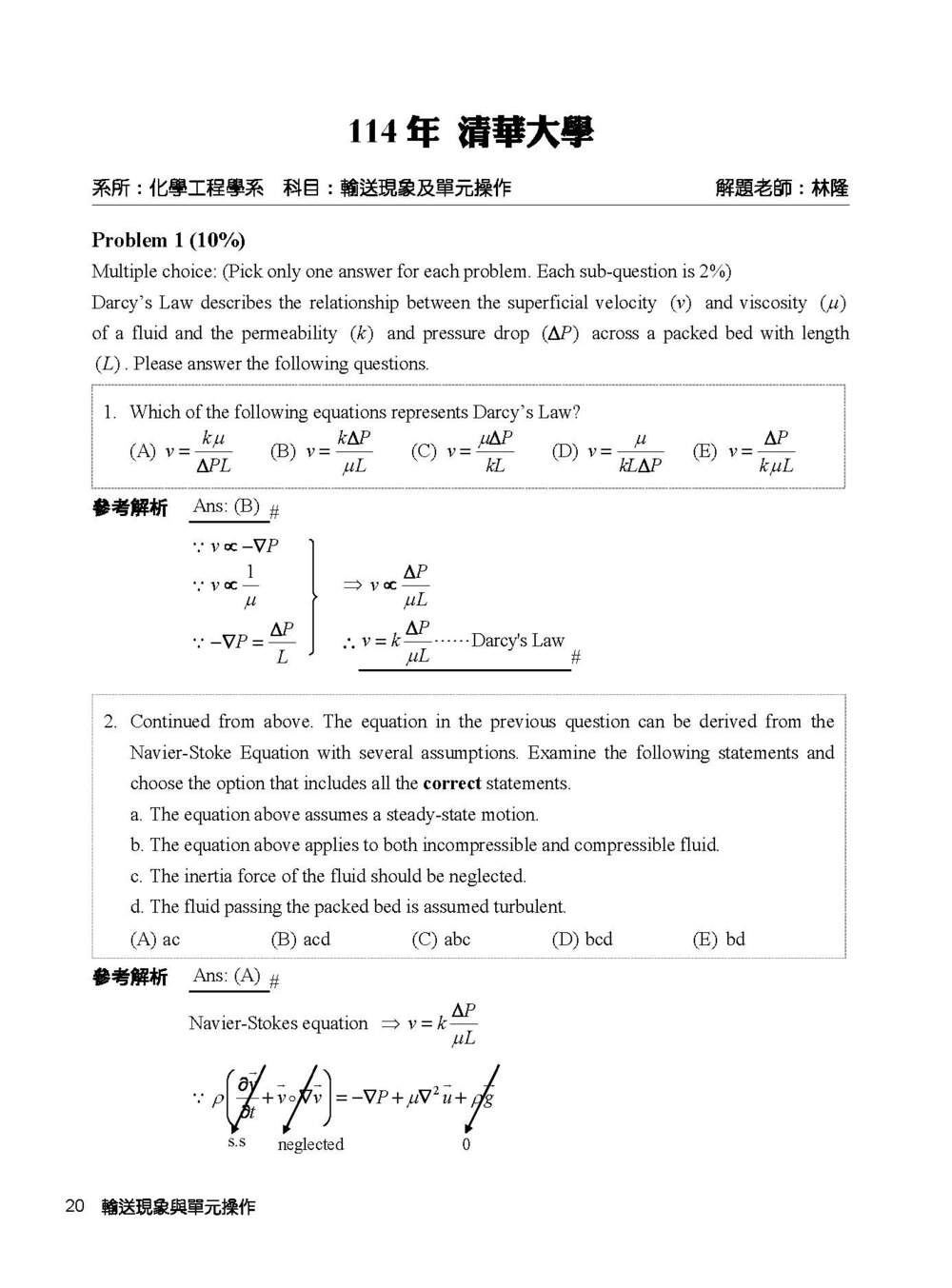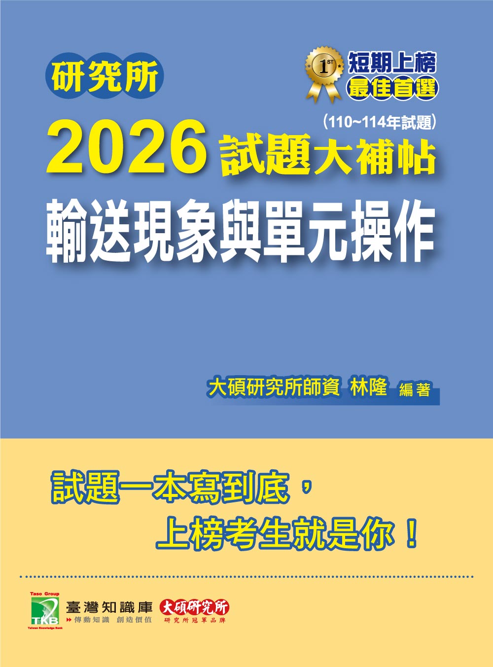 研究所2026試題大補帖【輸送現象與單元操作】(110~114年試題)[適用臺大、清大、成大、中央、中正、興大、臺科大、北科大研究所考試](CD4135)