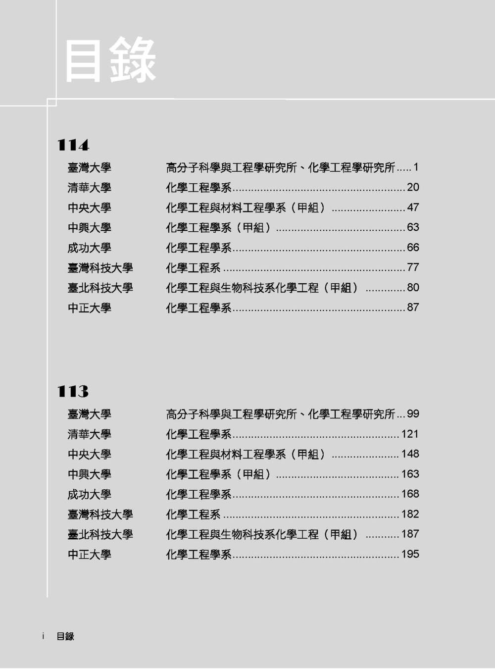 2.本書收錄學校:臺灣大學、中央大學、清華大學、中興大學、成功大學、中正大學、臺灣科技大學、臺北科技大學