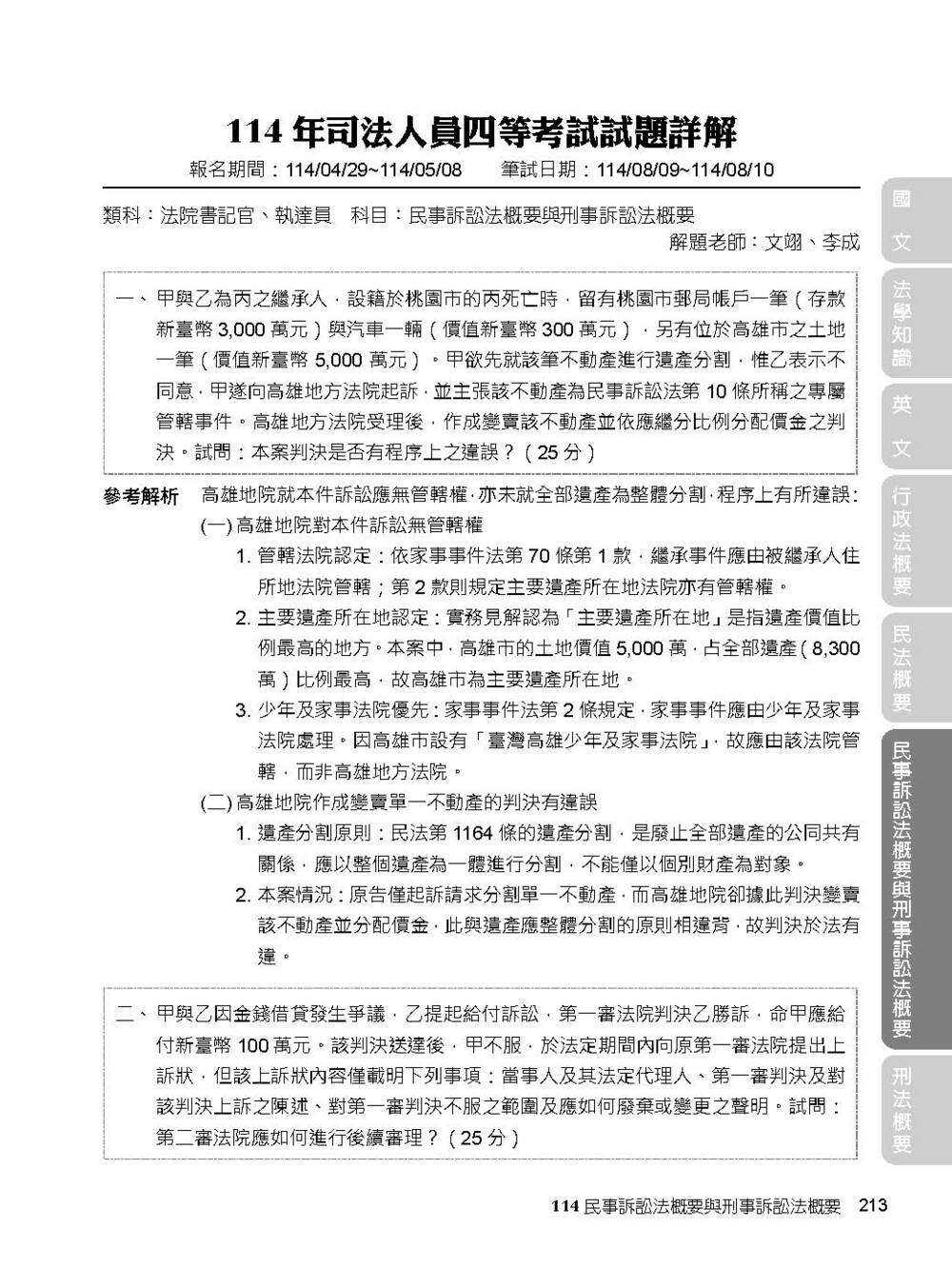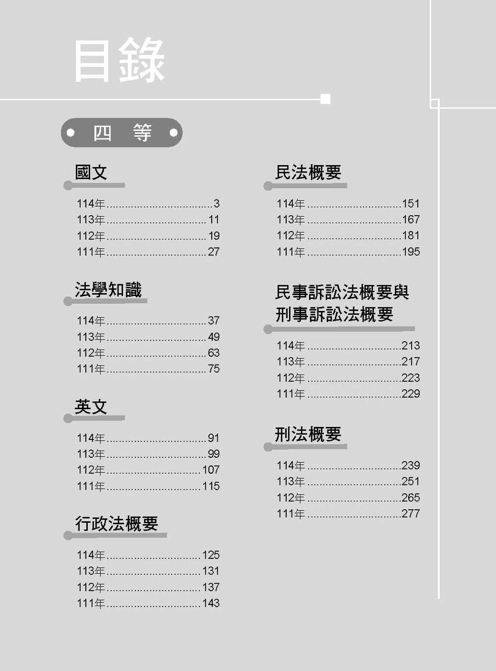 專為【司法特考】考生出版的解題書,完整收錄司法特考(四等)【法院書記官】111~114年試題,考前衝刺必備大補帖——