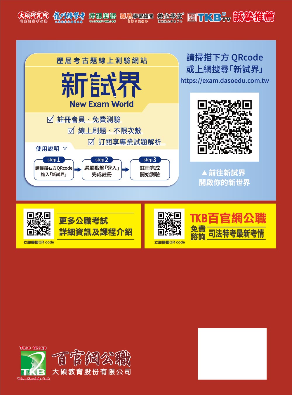 4. 試題大補帖搭配百官網公職,買書即贈200分鐘免費試聽課程。