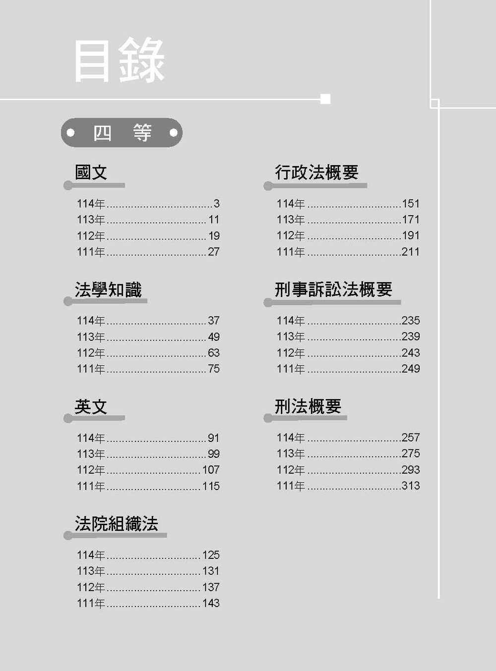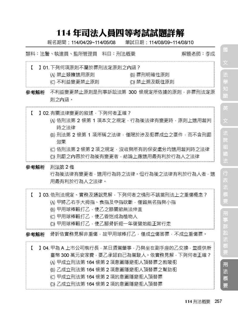 專為【司法特考】考生出版的解題書,完整收錄司法特考(四等)【法警】111~114年試題,考前衝刺必備大補帖——