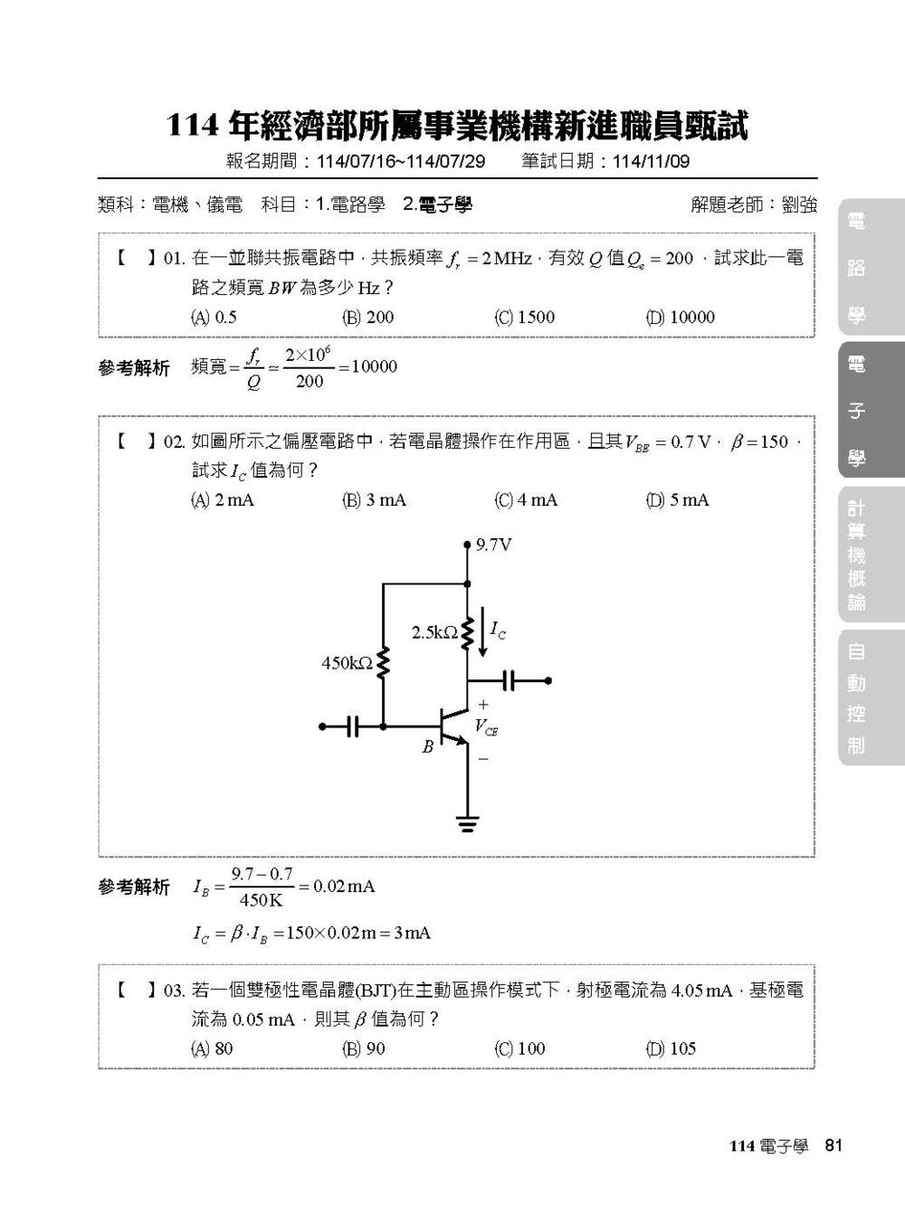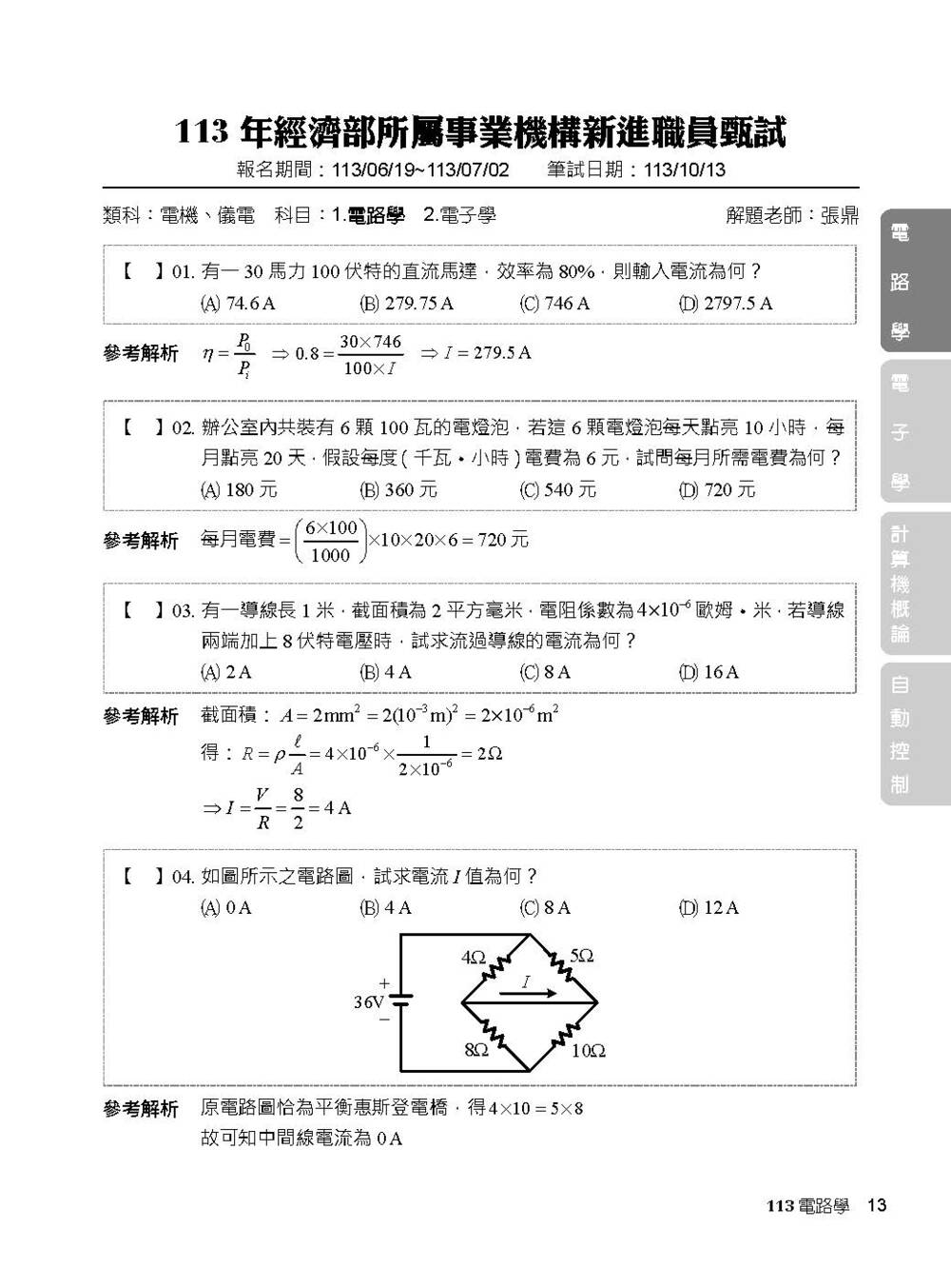 國營事業2026試題大補帖經濟部新進職員【儀電類】專業科目(109~114年試題)[適用台電、中油、台水考試](CR5110)