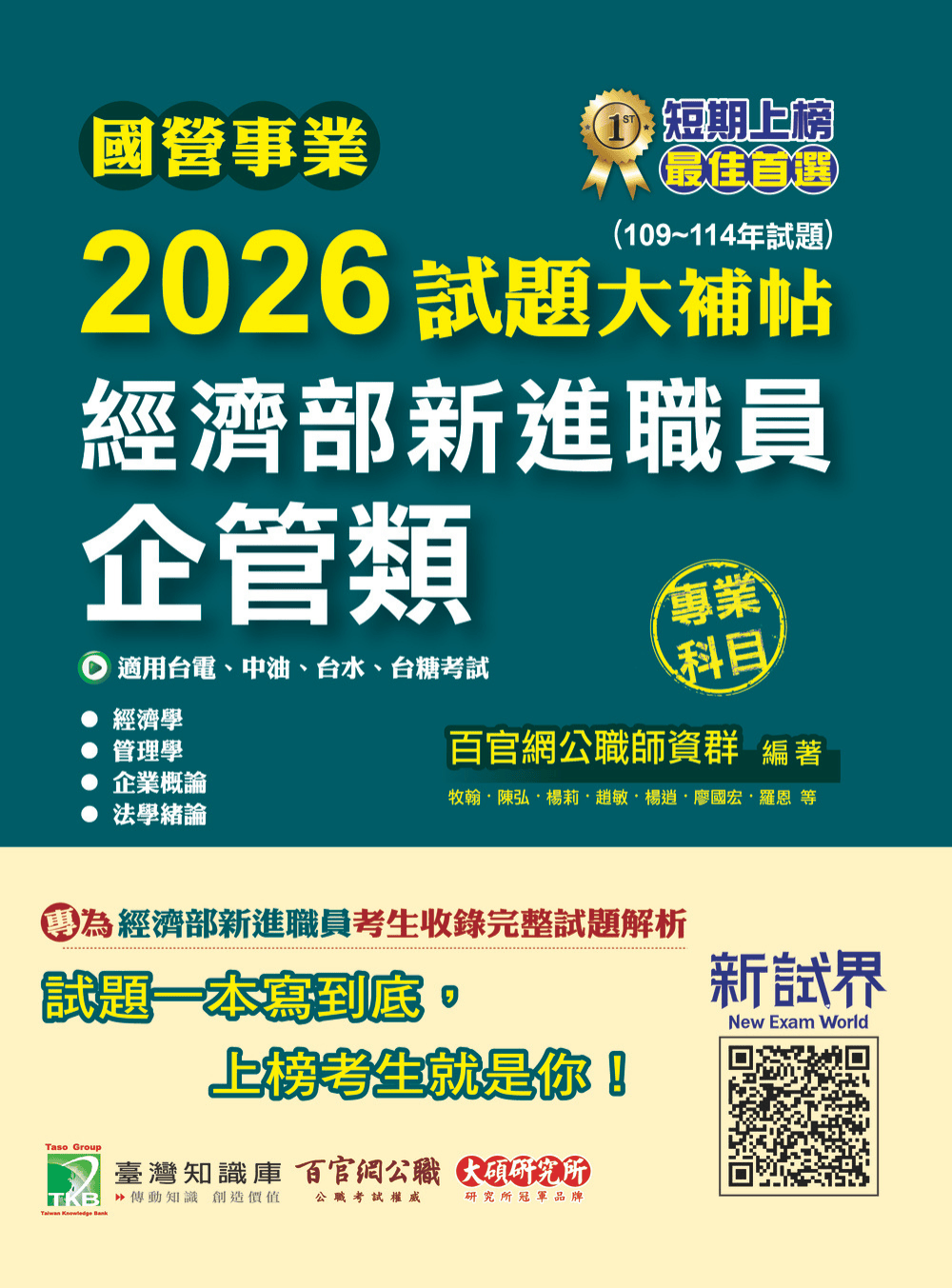 國營事業2026試題大補帖經濟部新進職員【企管類】專業科目(109~114年試題)[適用台電、中油、台水、台糖考試](CR5101)