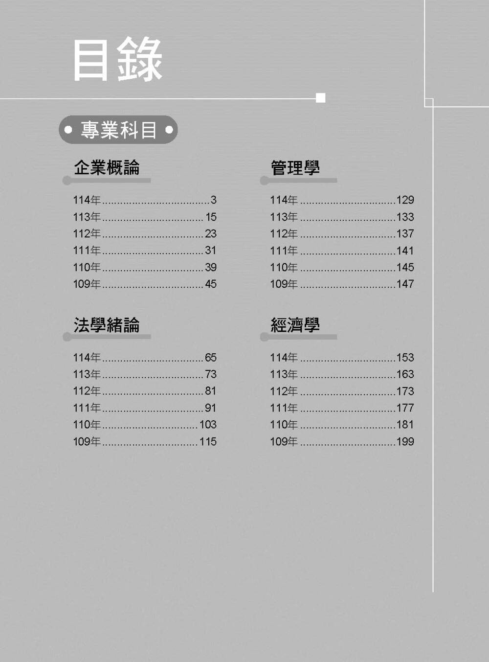 本書收錄考科包含:企業概論、法學緒論、管理學、經濟學
