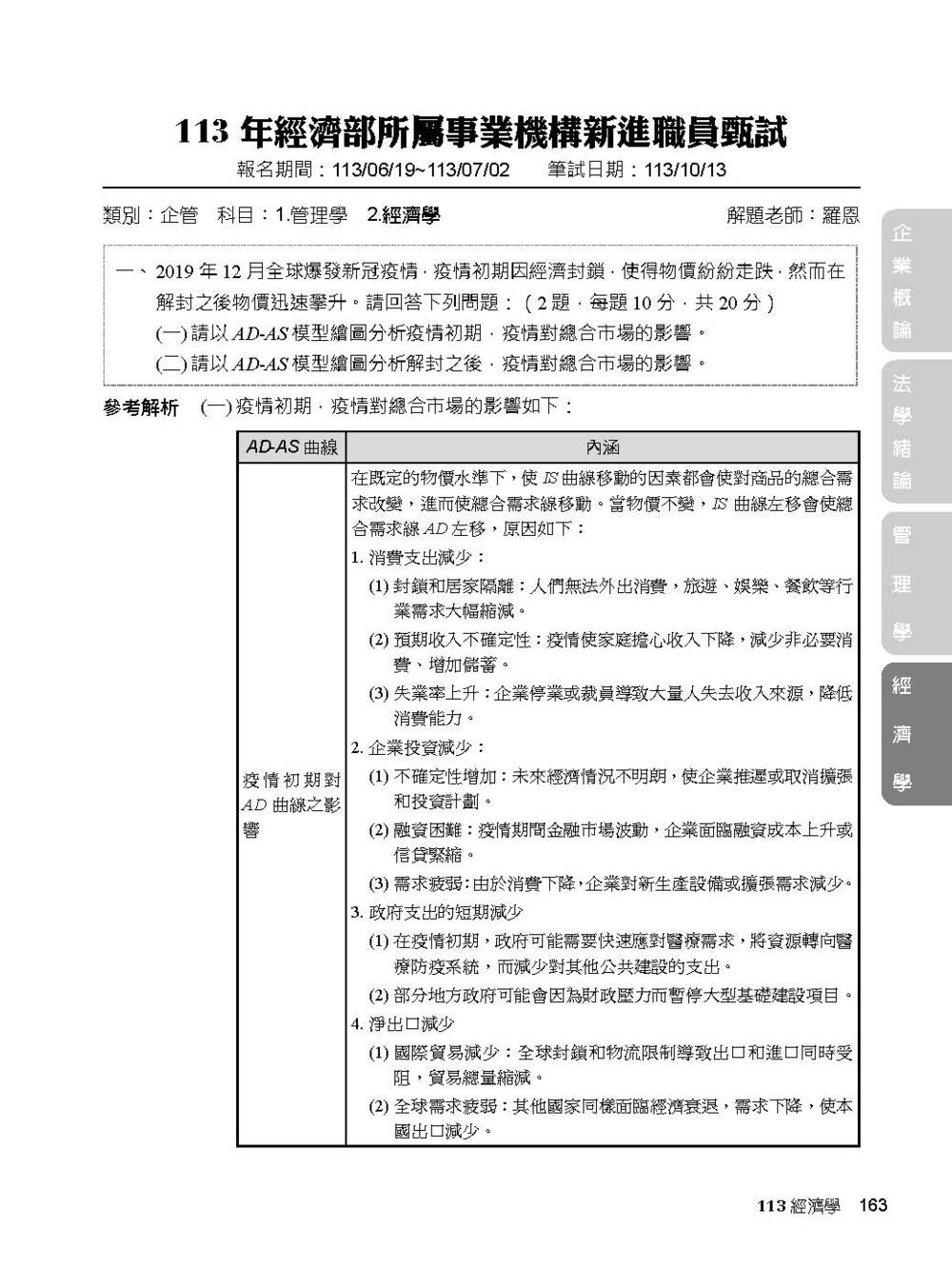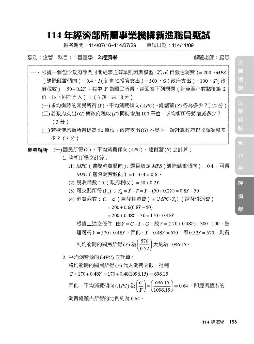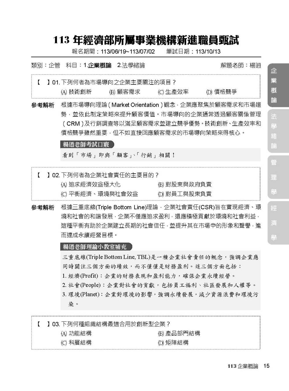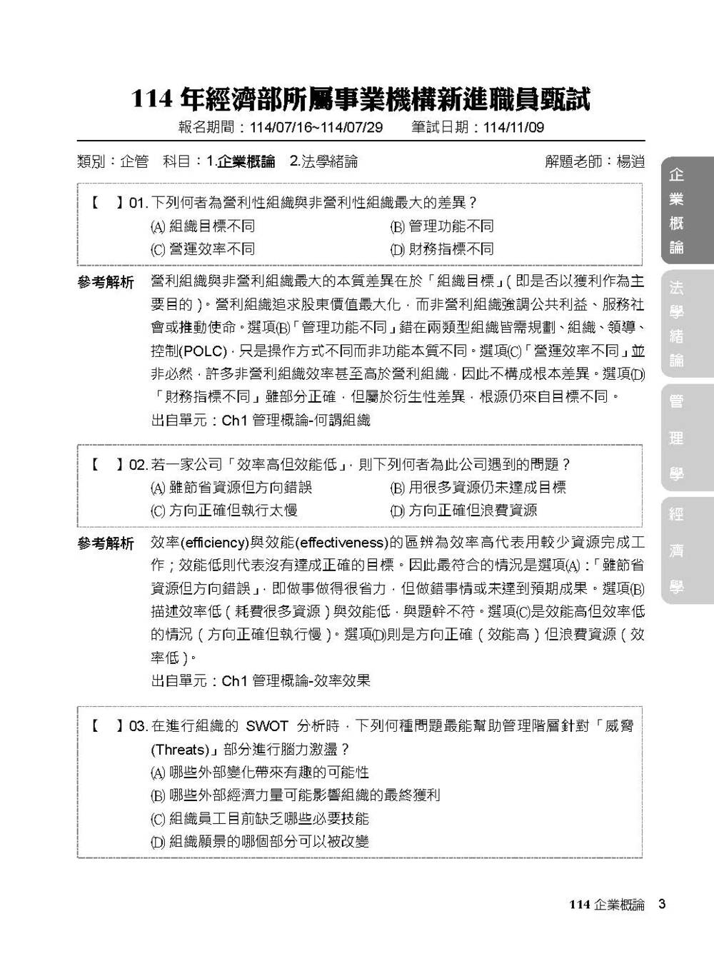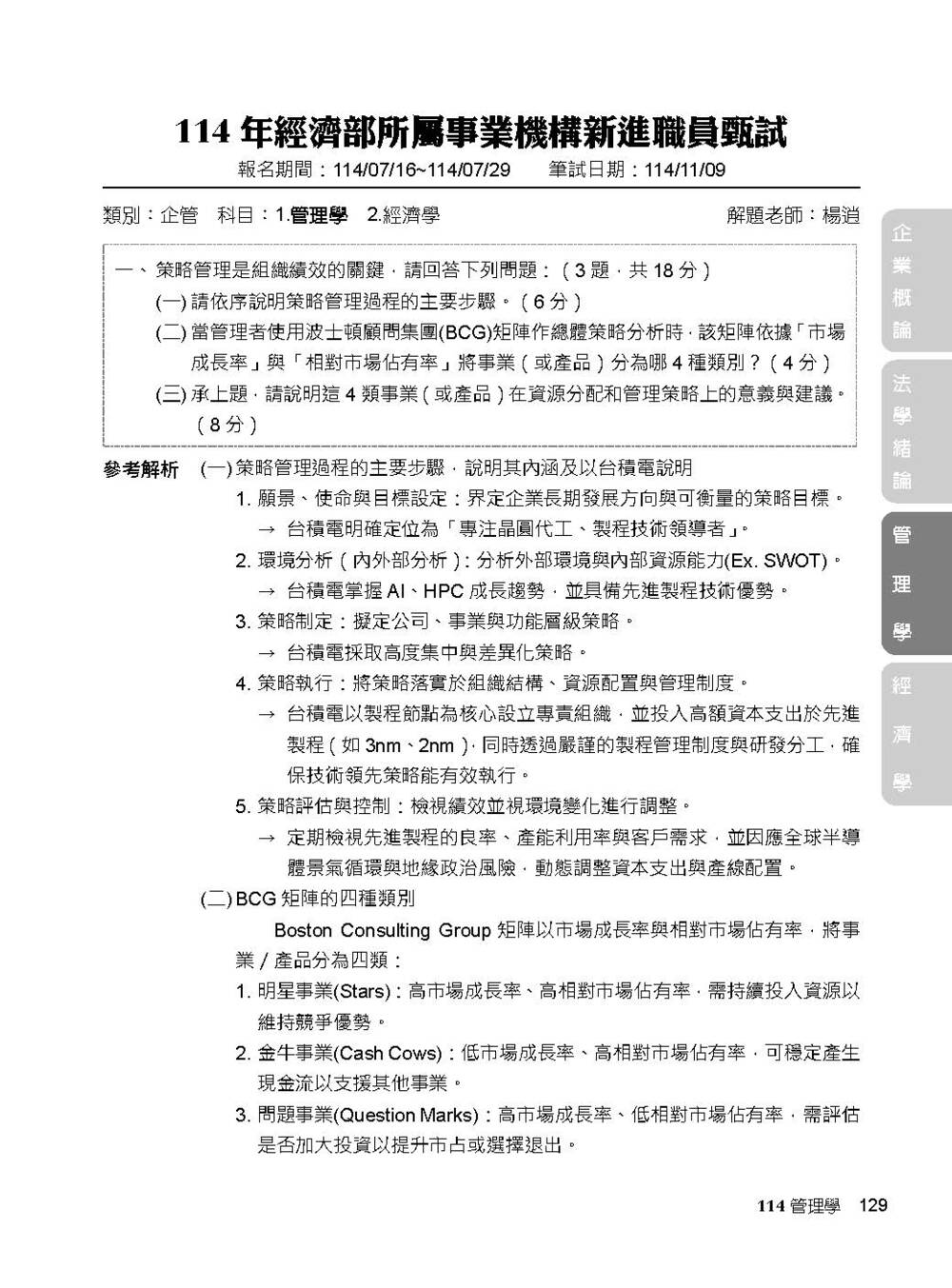 完整收錄經濟部新進職員【企管類】專業科目109~114年試題含解析