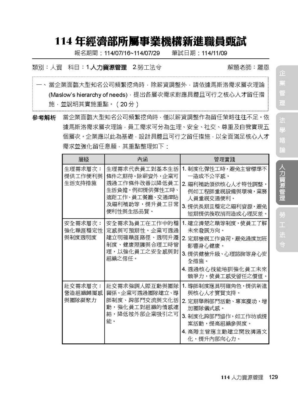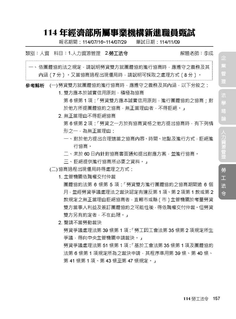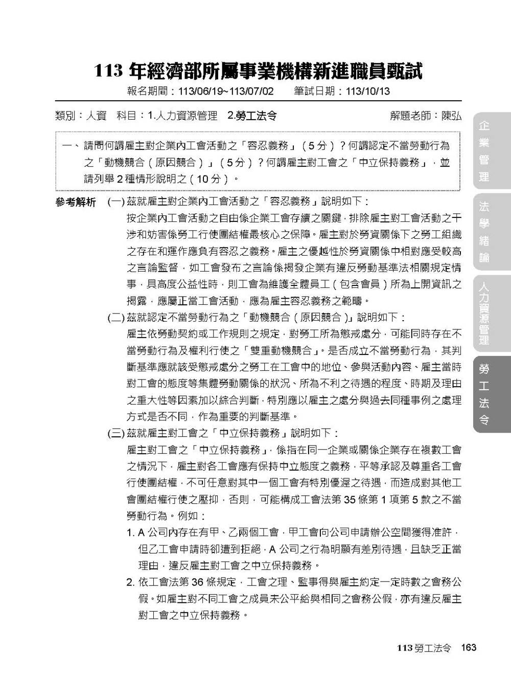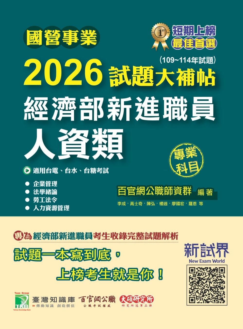 完整收錄經濟部新進職員【人資類】專業科目109~114年試題含解析