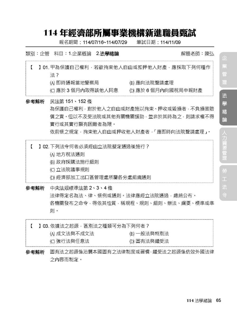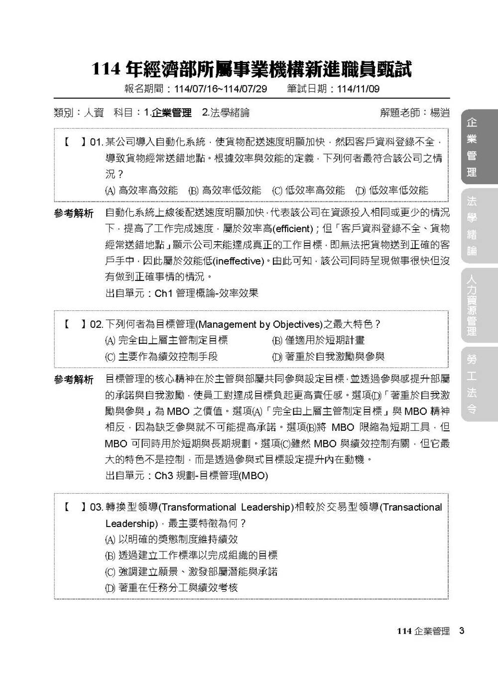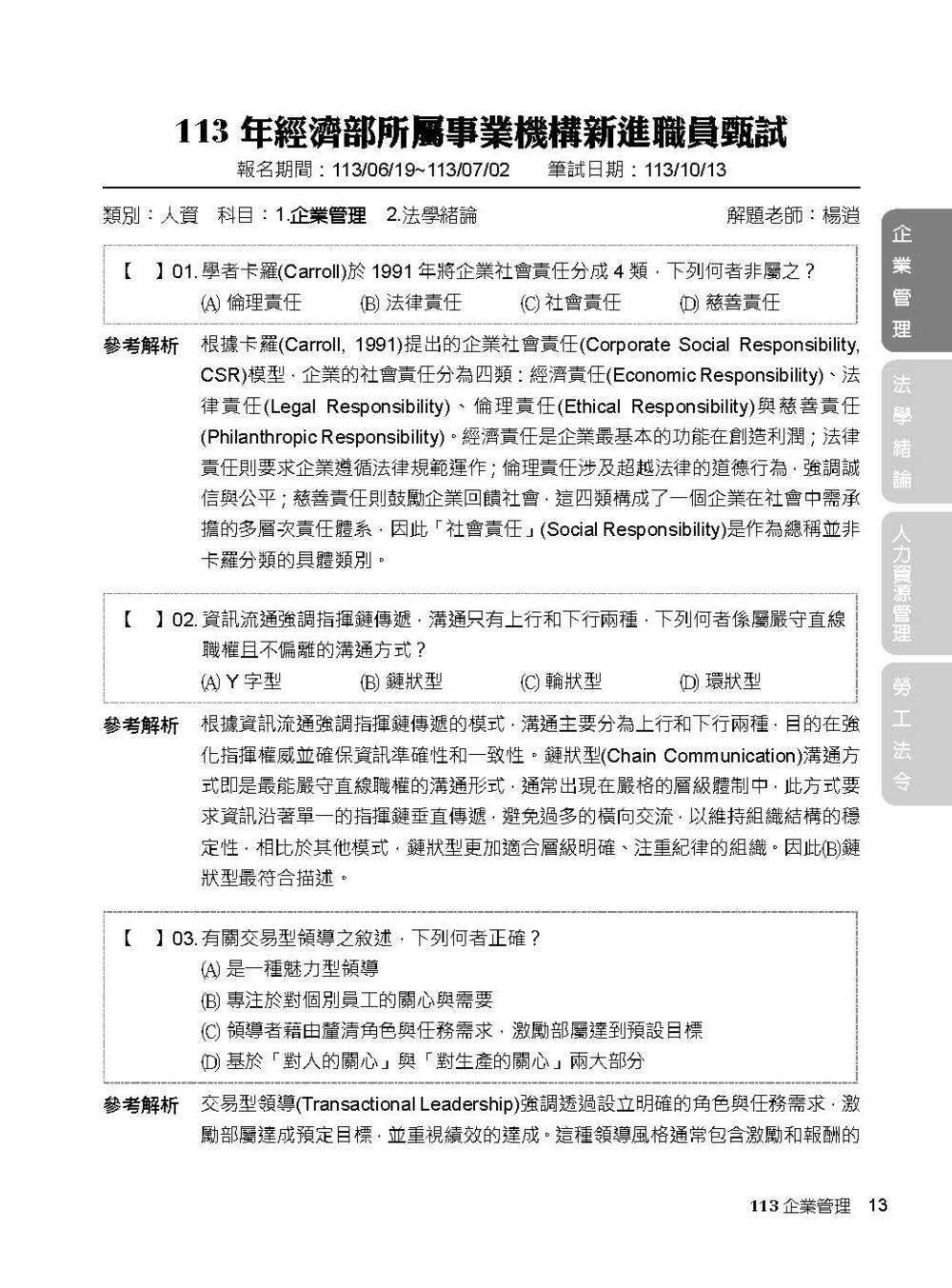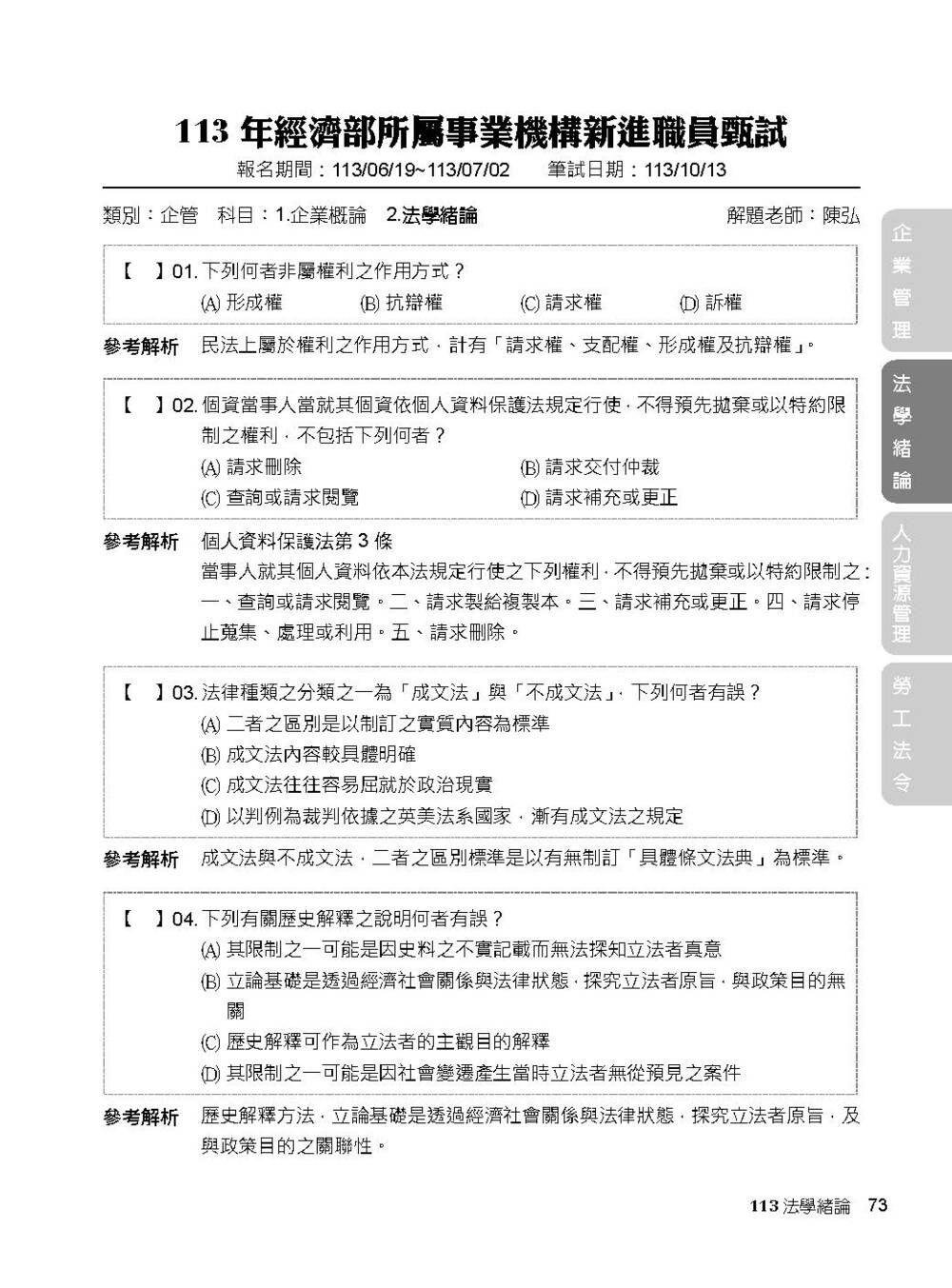 完整收錄經濟部新進職員【人資類】專業科目109~114年試題含解析