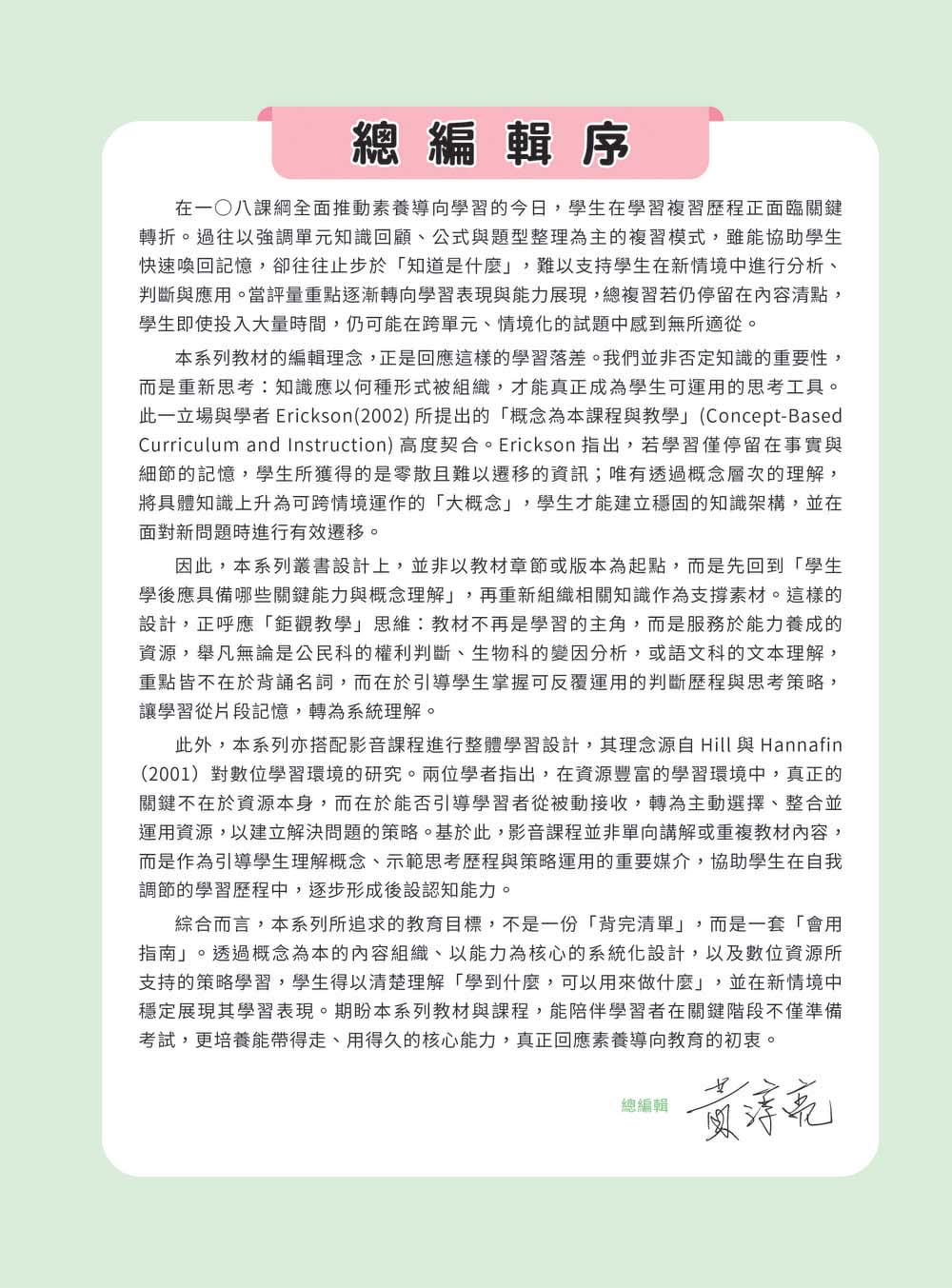 108課綱強調素養導向的課程設計與命題精神,而素養題的核心在於結合真實生活情境,引導學生將課堂所學靈活運用於日常生活之中。各單元內容分為以下三大部分: