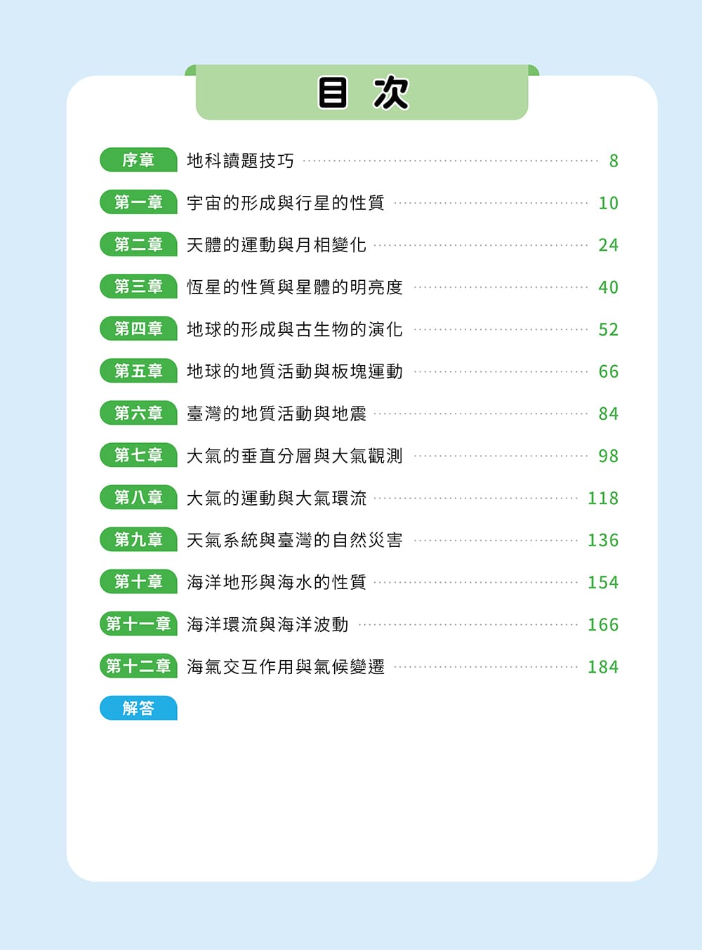 依據高中地科課程單元架構編排,循序整理各單元核心概念,幫助學生建立完整且清晰的知識脈絡。內容除重點整理外,亦提供補充說明與範例,強化學生對知識點的理解與應用。
