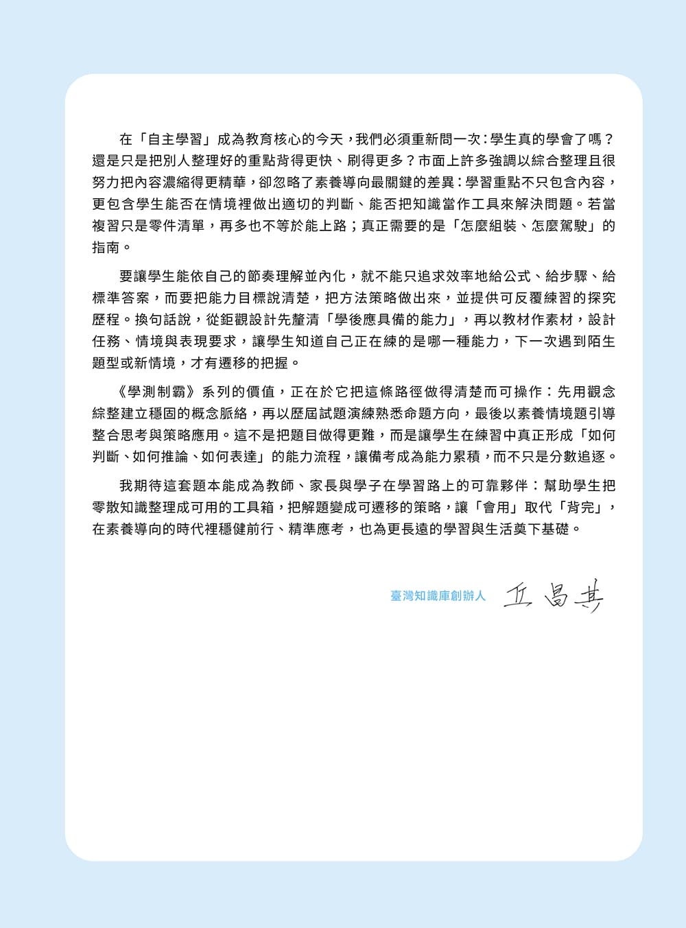 中華未來學校教育學會邱德承主編親自操刀,運用豐富教學經驗精心設計而成,循序漸進引導學生靈活解題,面對素養題型的生活情境化更加得心應手。